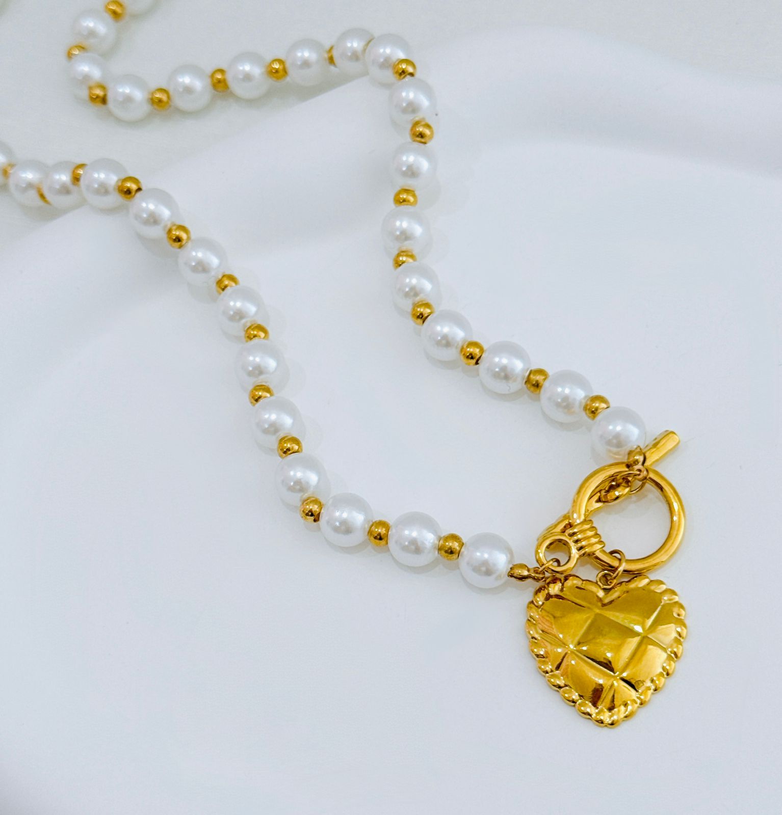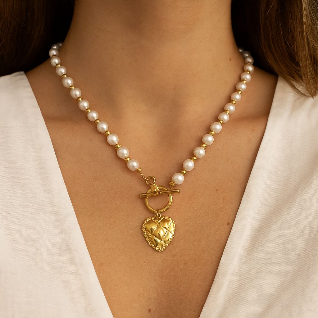 COLLAR PERLA CON BROCHE T Y CORAZON