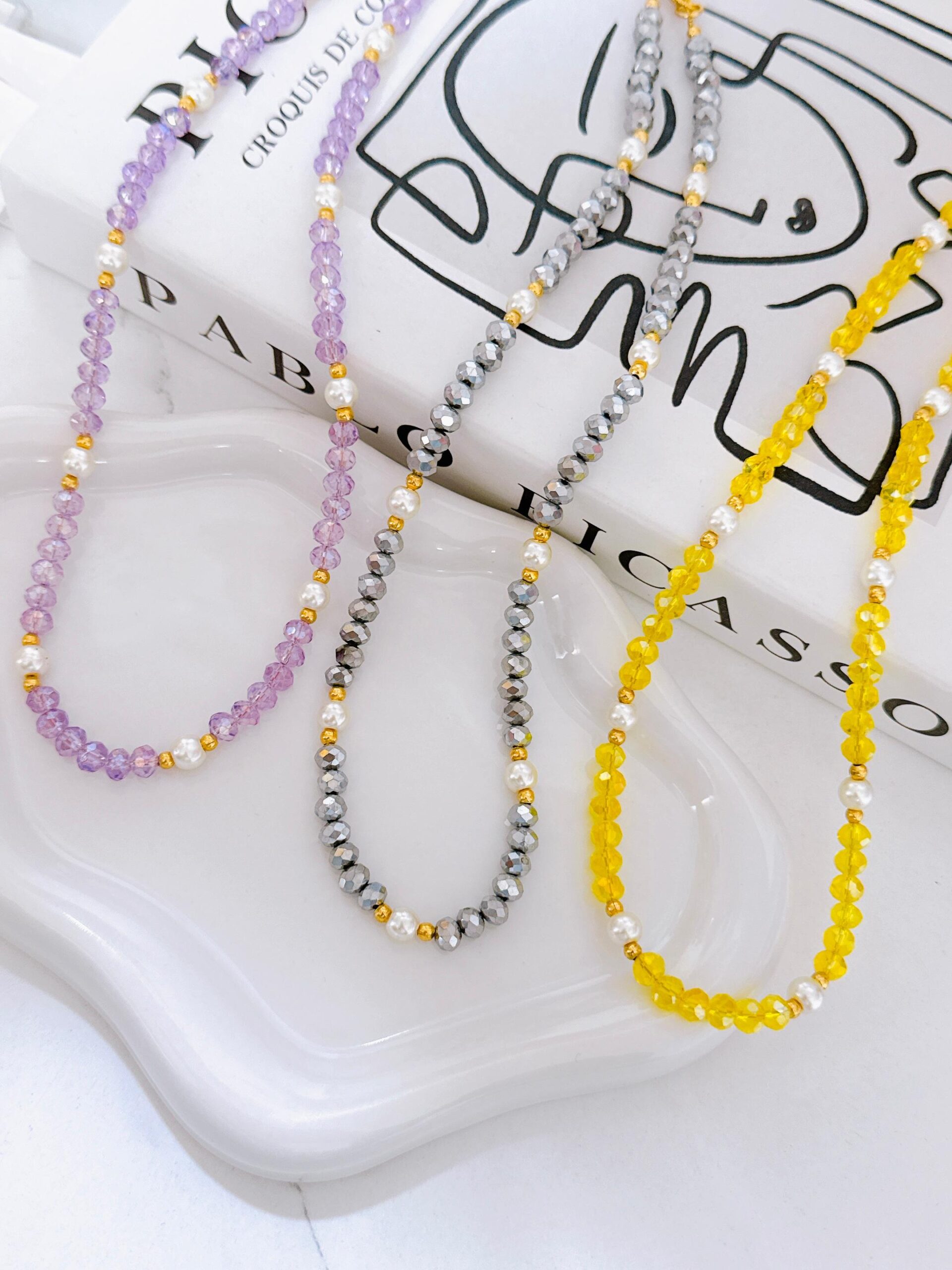 COLLAR PERLA CRISTAL LILA / PLATA / AMARILLO