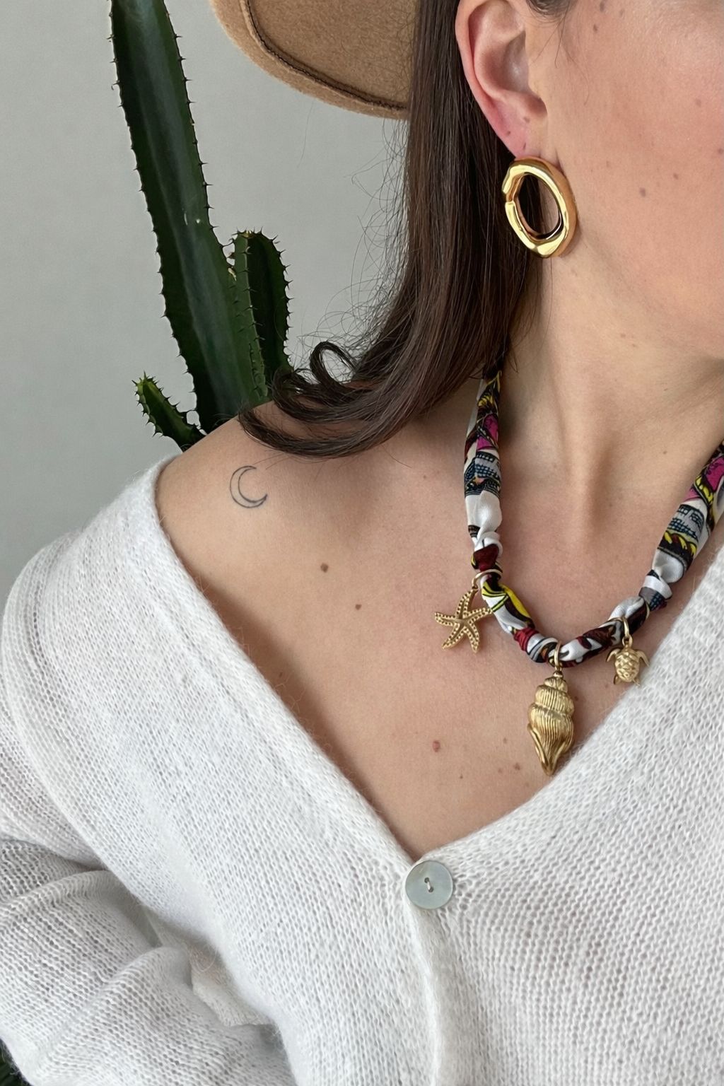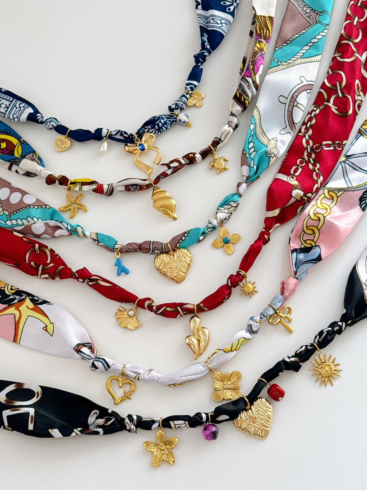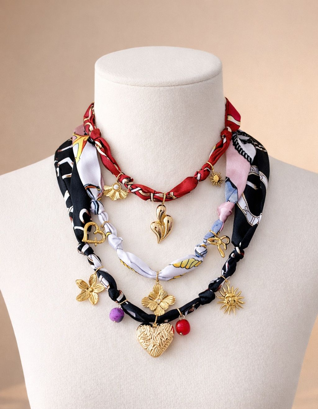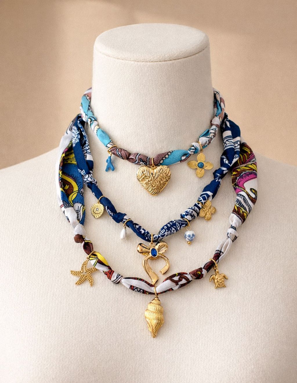 COLLAR TELA MULTI CHARMS CON TRES DIJES