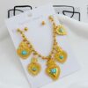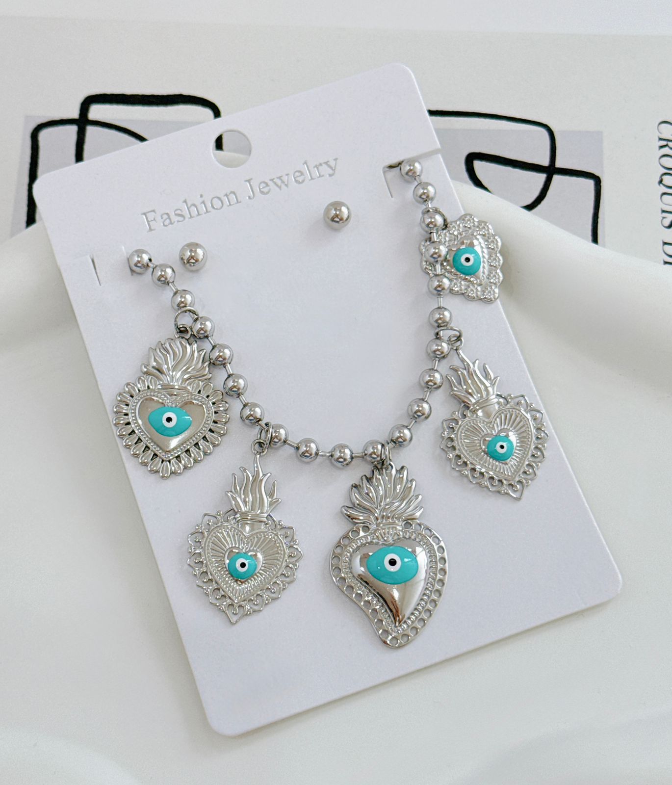 COLLAR Y ARETE BOLITA SAGRADO CORAZON CON OJO TURCO DORADO/PLATA