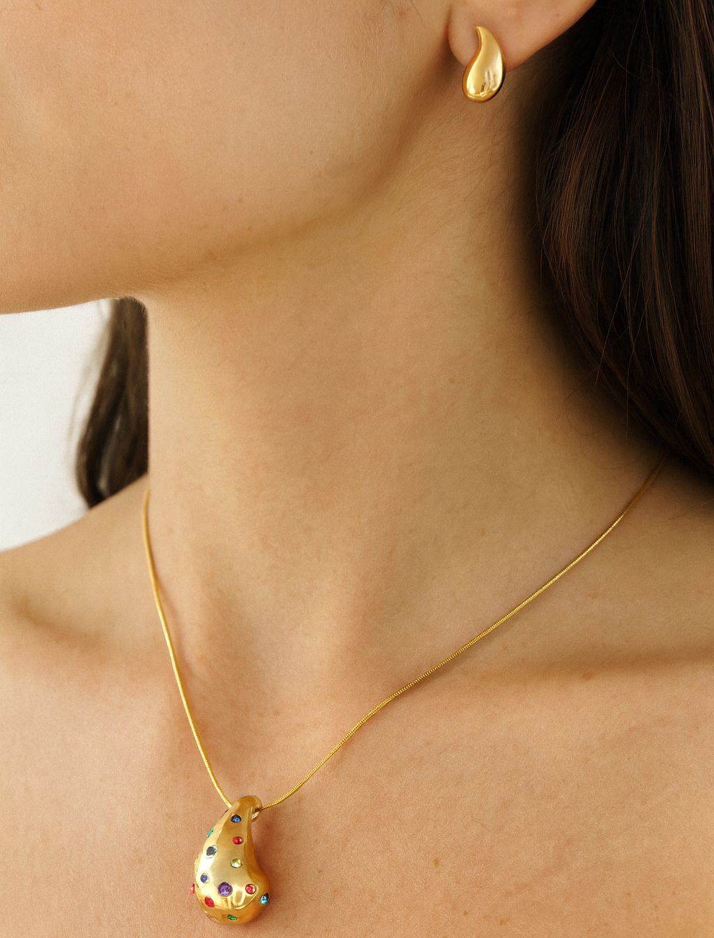 COLLAR Y ARETE BOTTEGA CON CRISTALES MULTICOLOR