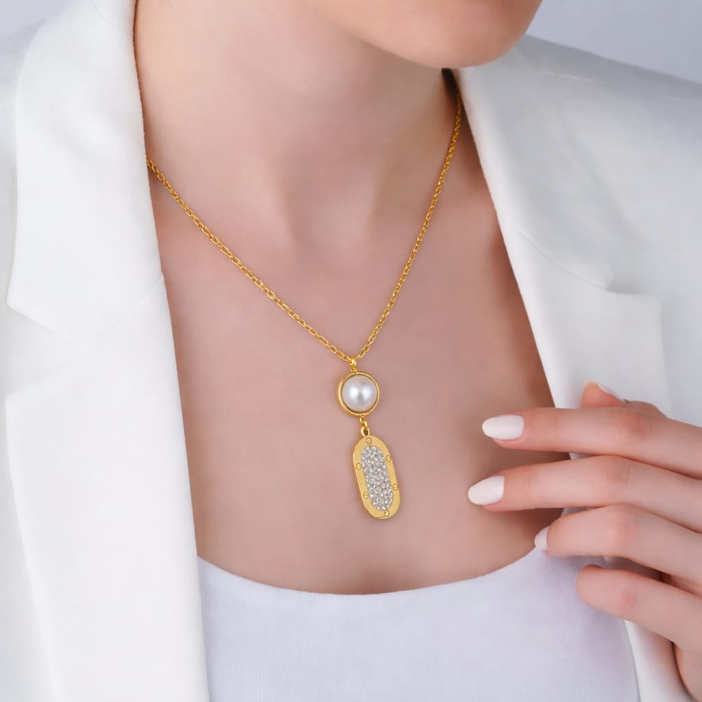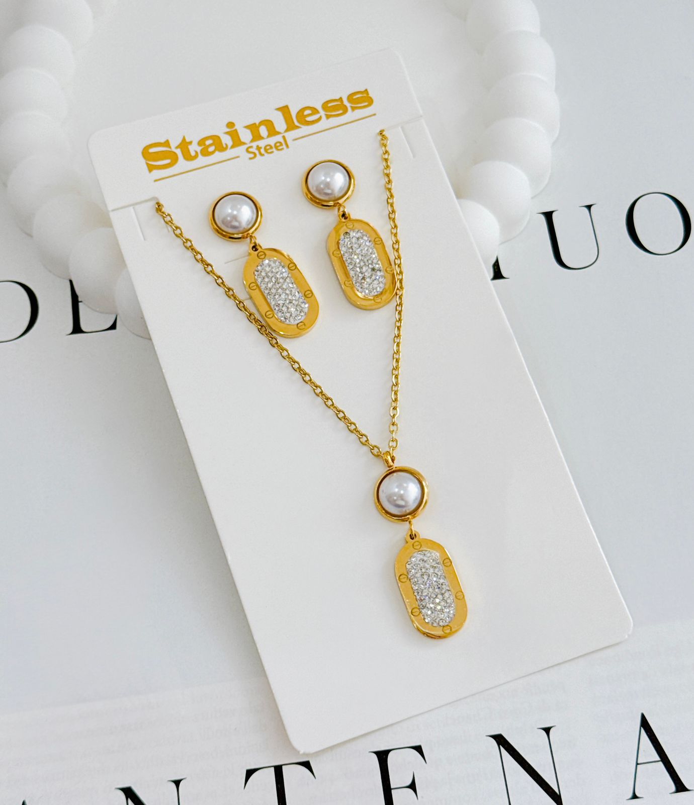 COLLAR Y ARETE CARTIER PLACA CON PERLA