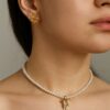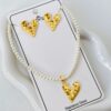 COLLAR Y ARETE DE PERLA CON DIJE MARIPOSA/MOÑO/CORAZON