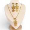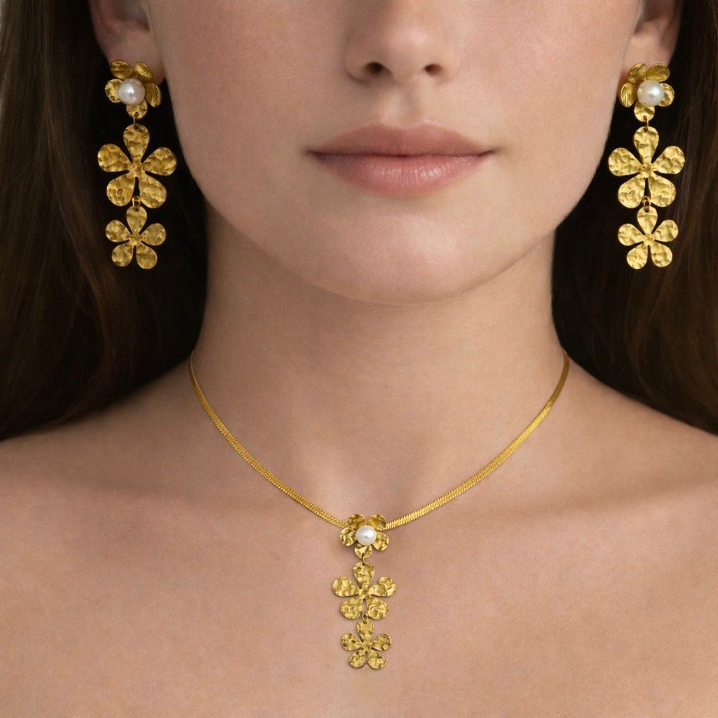 COLLAR Y ARETE DE TRES FLORES CON PERLA