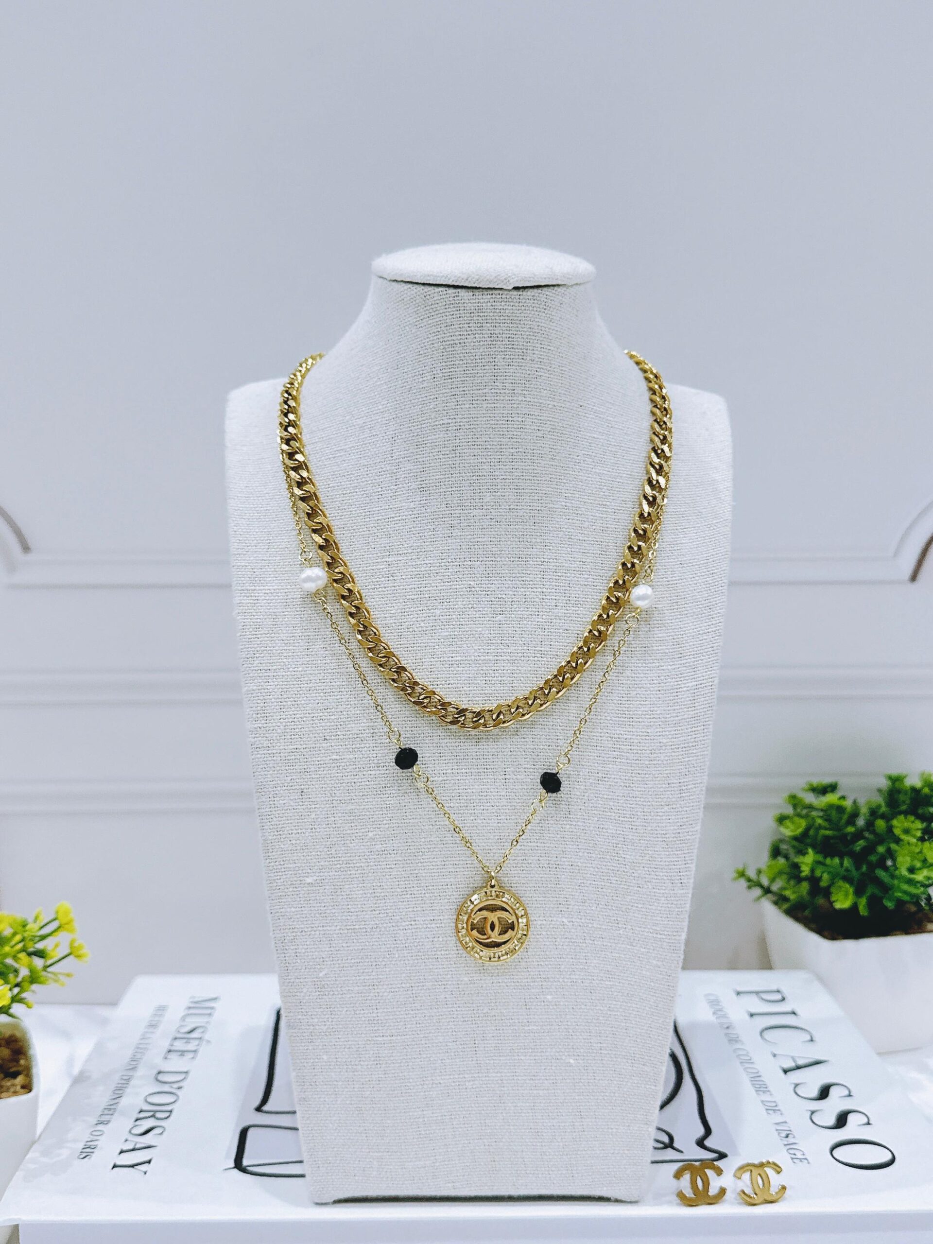 COLLAR Y ARETE DOBLE CAIDA CADENA CHANNEL