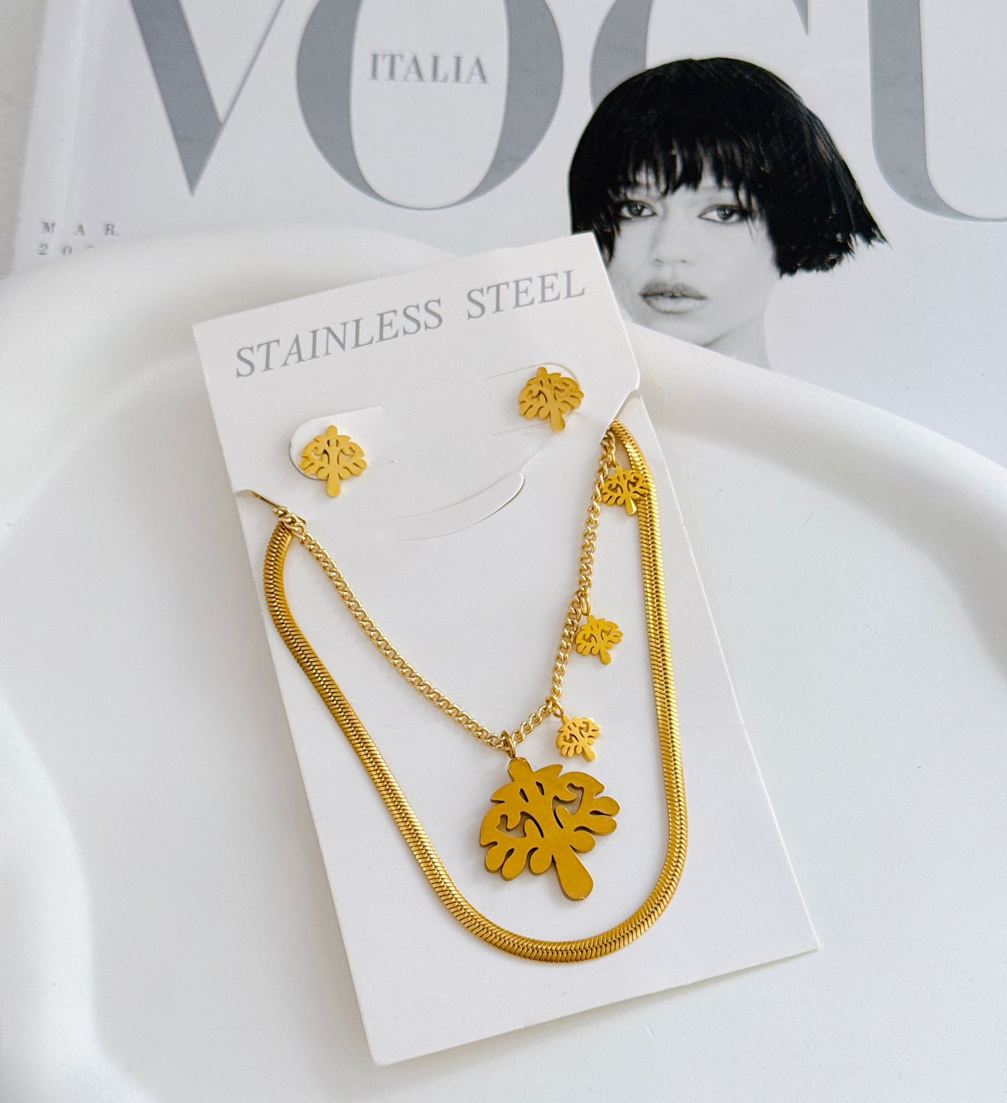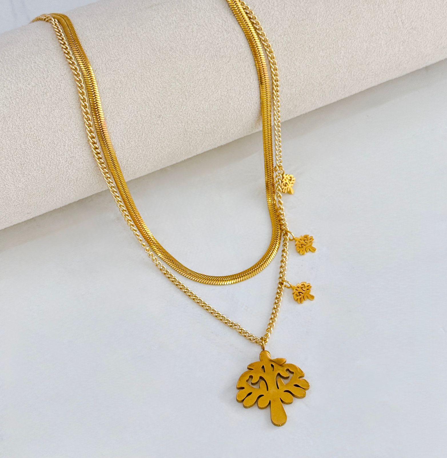 COLLAR Y ARETE DOBLE CAIDA DE ARBOL (PANZA DE VIBORA)