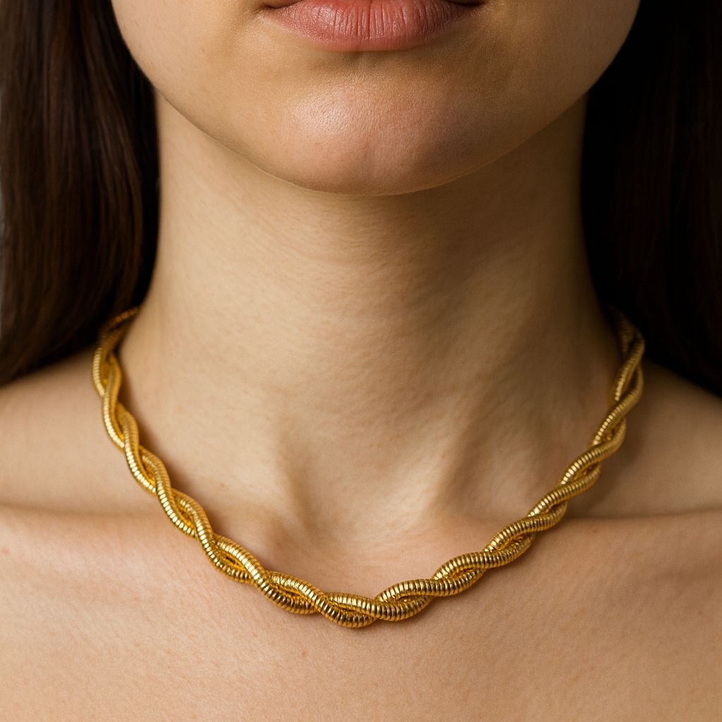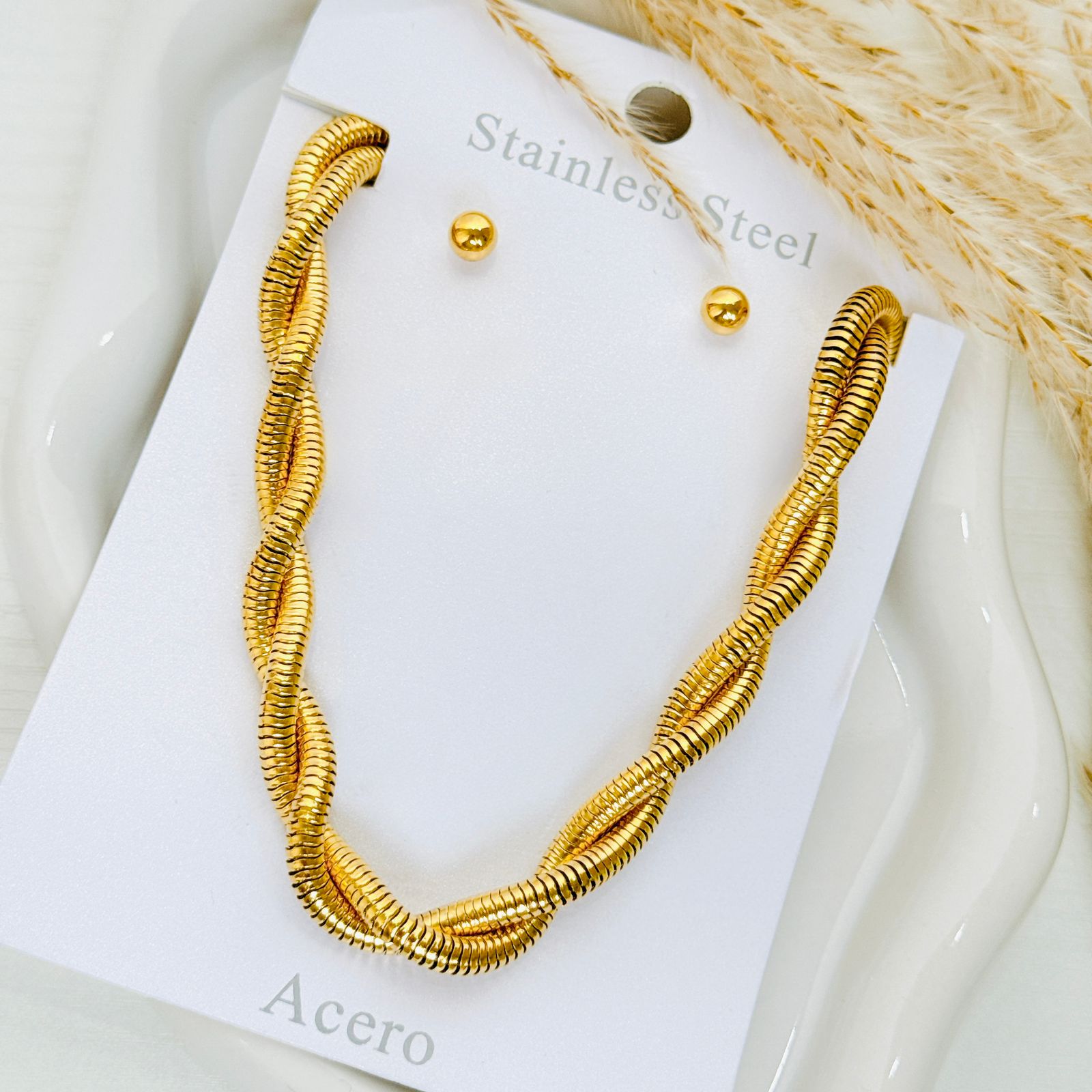 COLLAR Y ARETE DOBLE TORCIDO DORADO