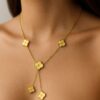 COLLAR Y ARETE DORADO TREBOL CON COLGANTE