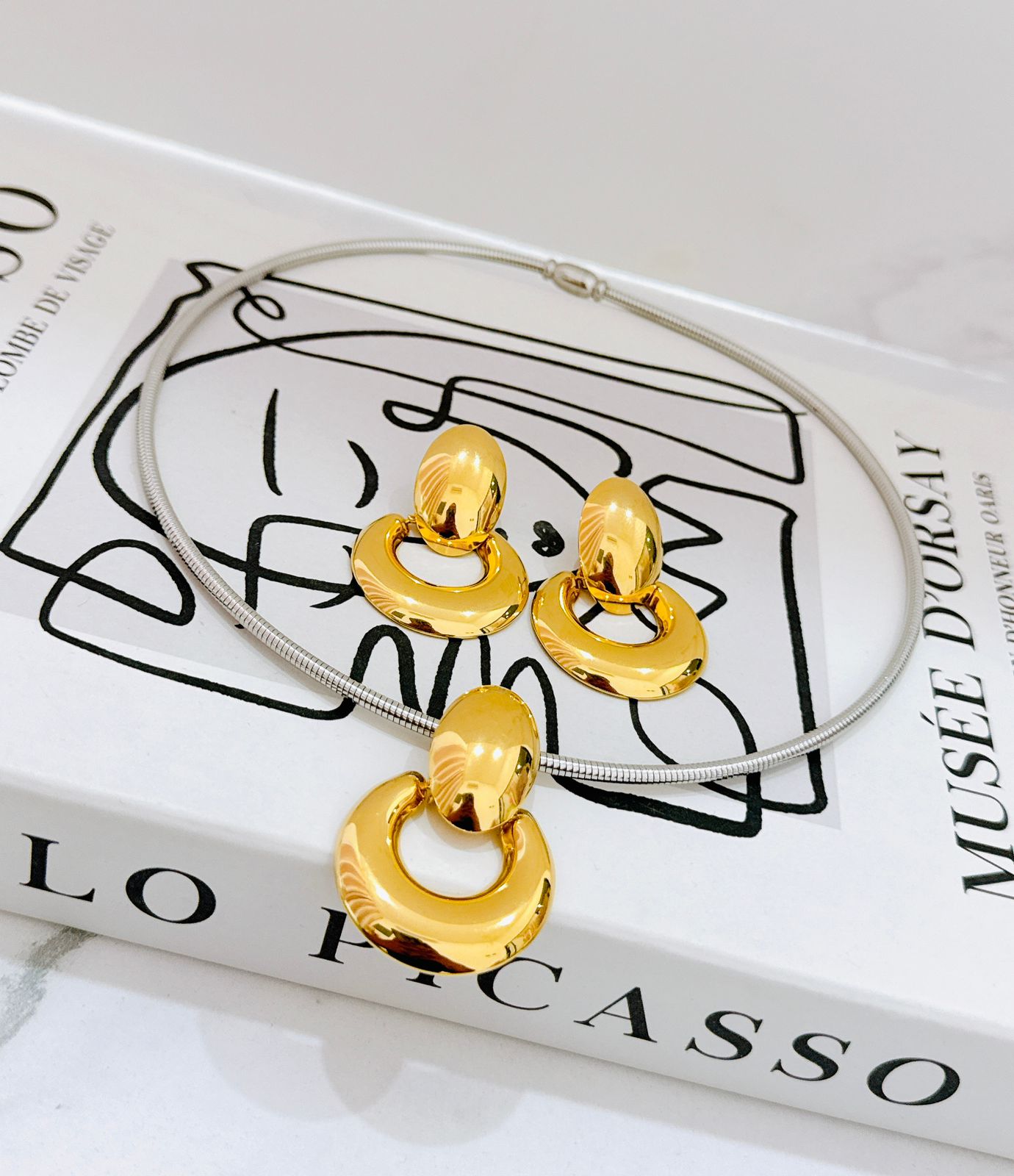 COLLAR Y ARETE DUBAI DORADO/PLATA