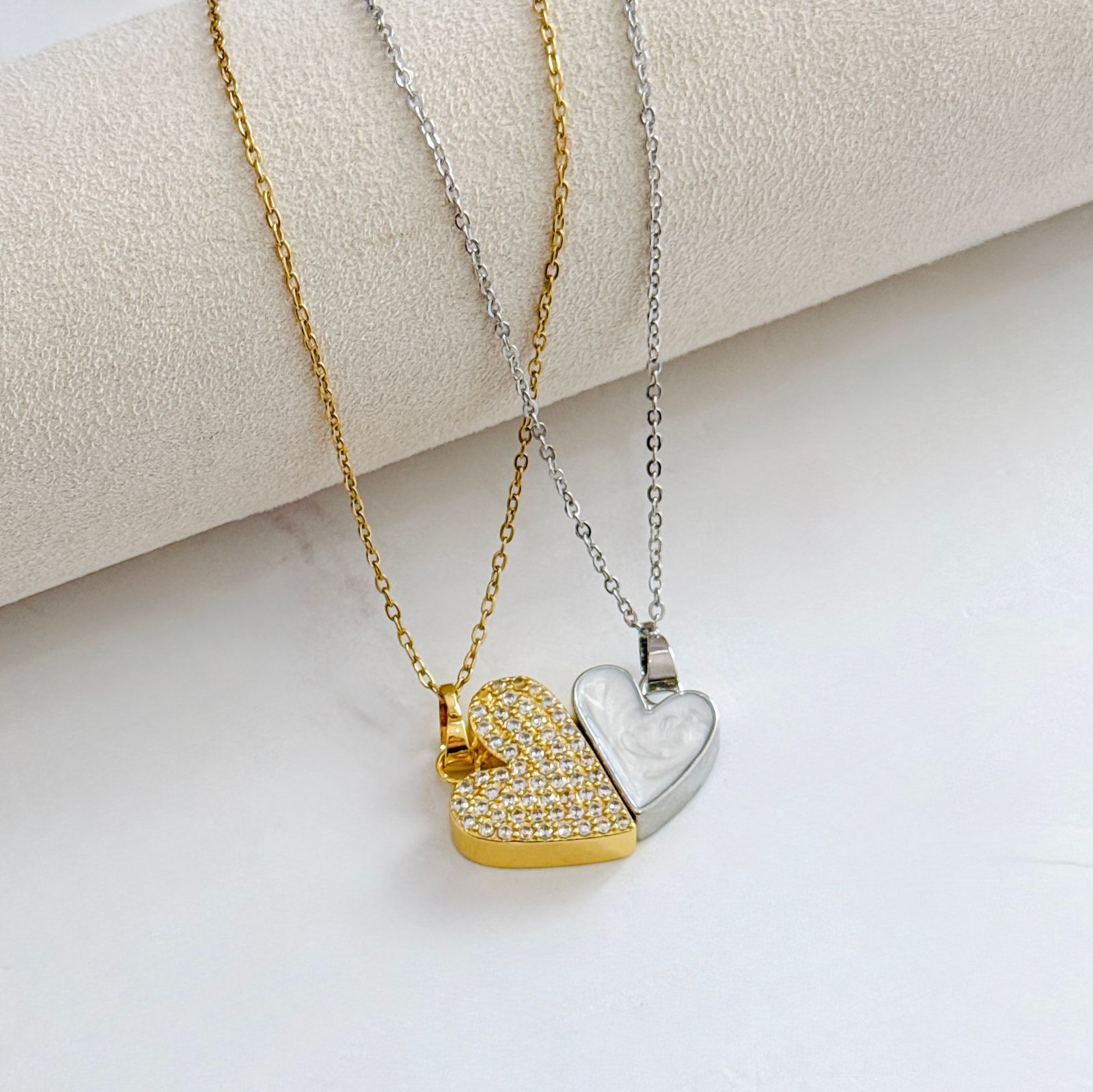 COLLAR Y ARETE DUO CON IMAN Y DIJE DE CORAZON