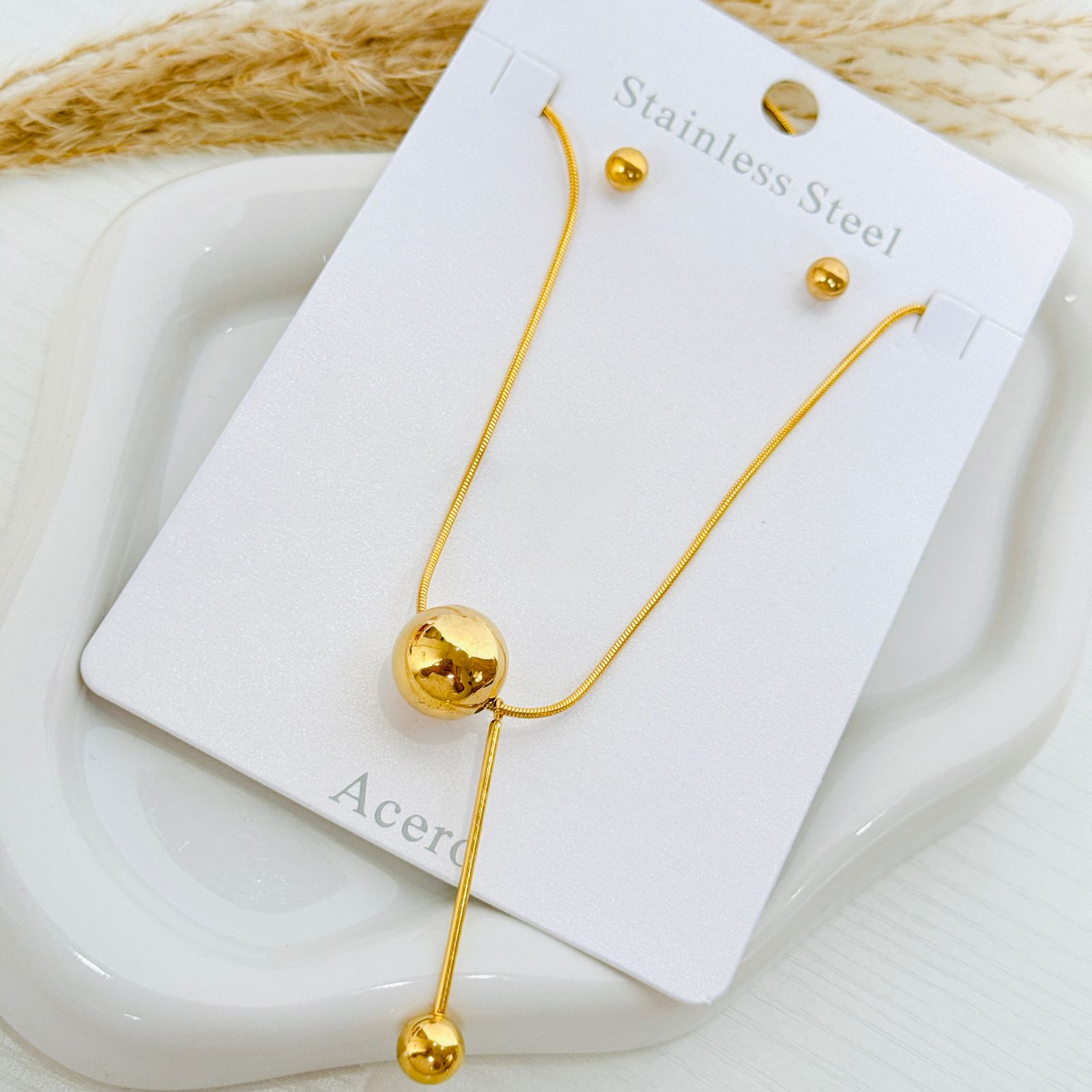 COLLAR Y ARETE ESFERA CON COLGANTE