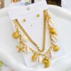 COLLAR Y ARETE ESLABON DOBLE CAIDA CON DIJE DE MAR
