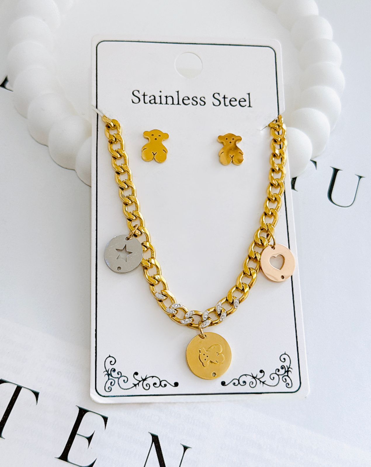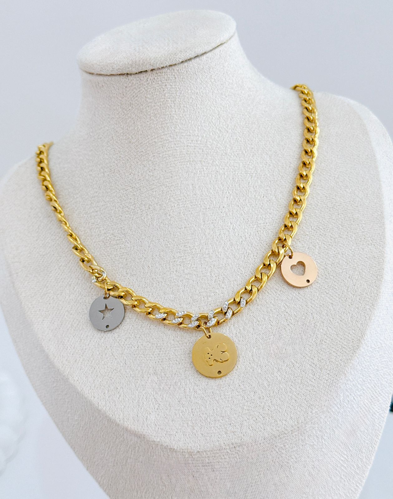 COLLAR Y ARETE ESLABON MEDALLON TOUS