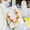 COLLAR Y ARETE BOLITA CON DIJE CEREZAS CON CORAZON Y PERLA CON DIJE CORAZON GRANDE
