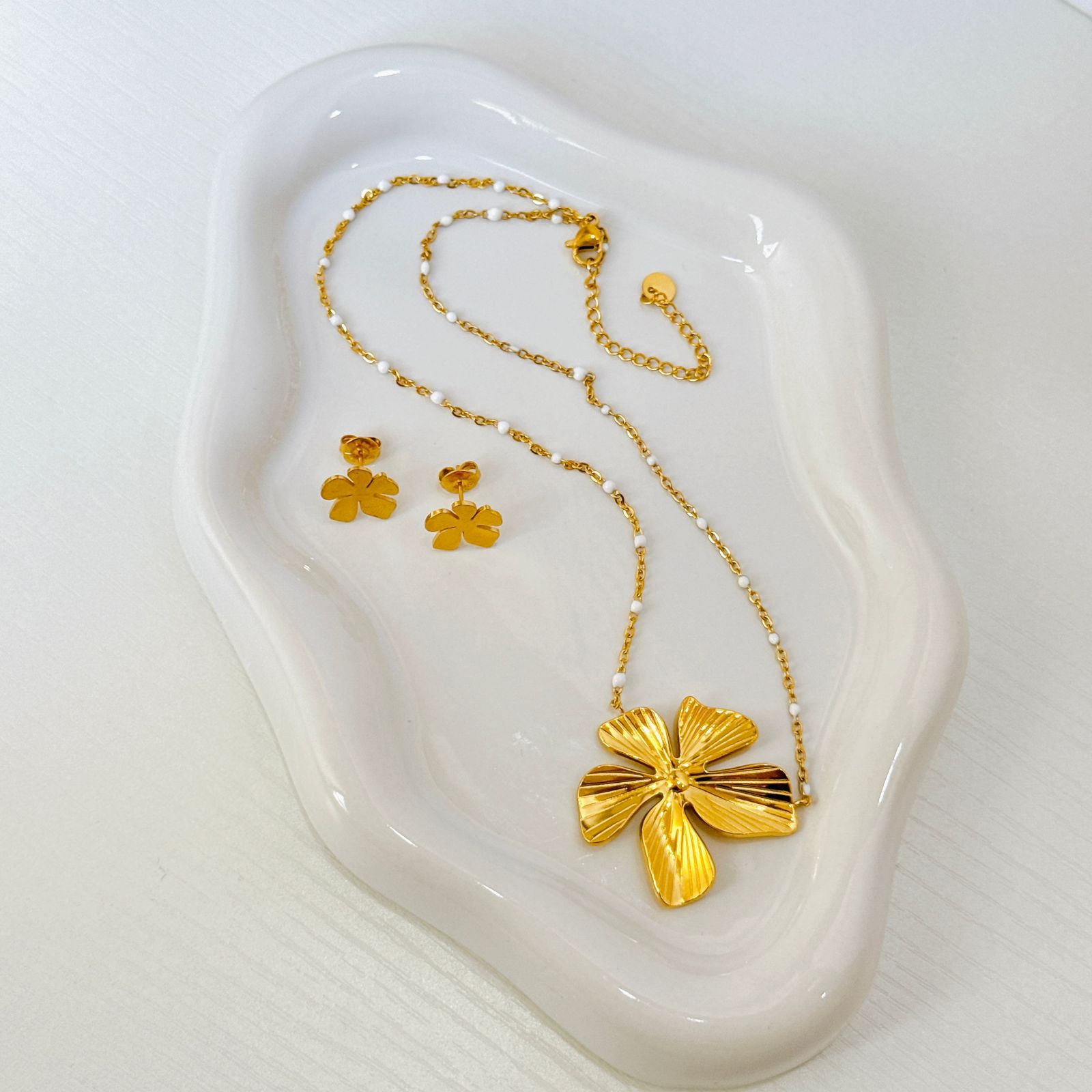 COLLAR Y ARETE GRAN FLOR DORADO