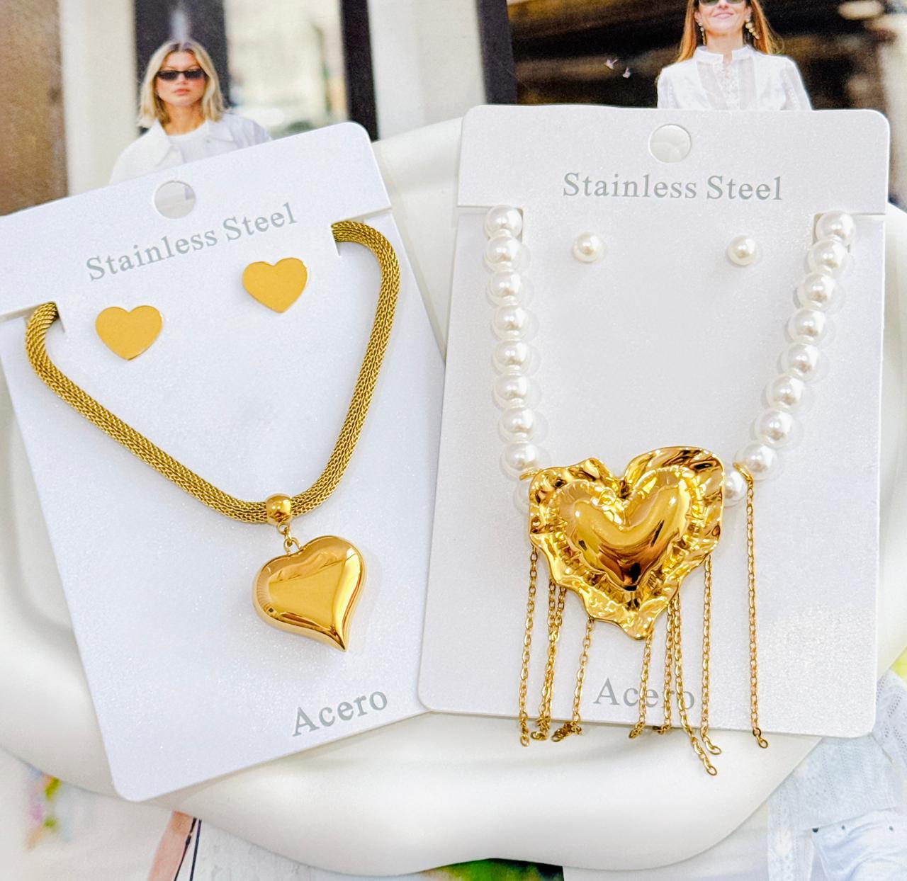 COLLAR Y ARETE MAYA Y PERLA CORAZON