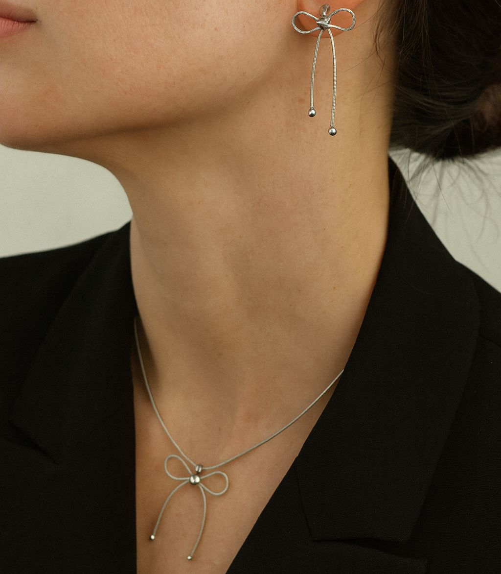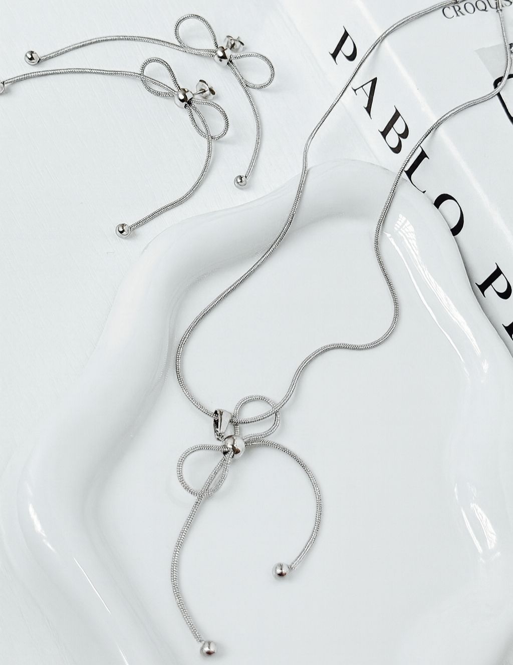 COLLAR Y ARETE MOÑO PLATA