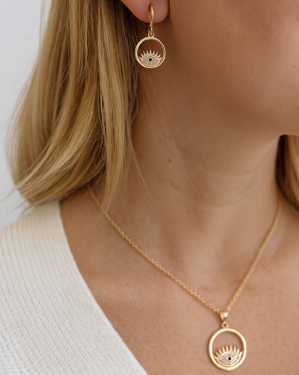 COLLAR Y ARETE OJO TURCO ARO CIRCULAR