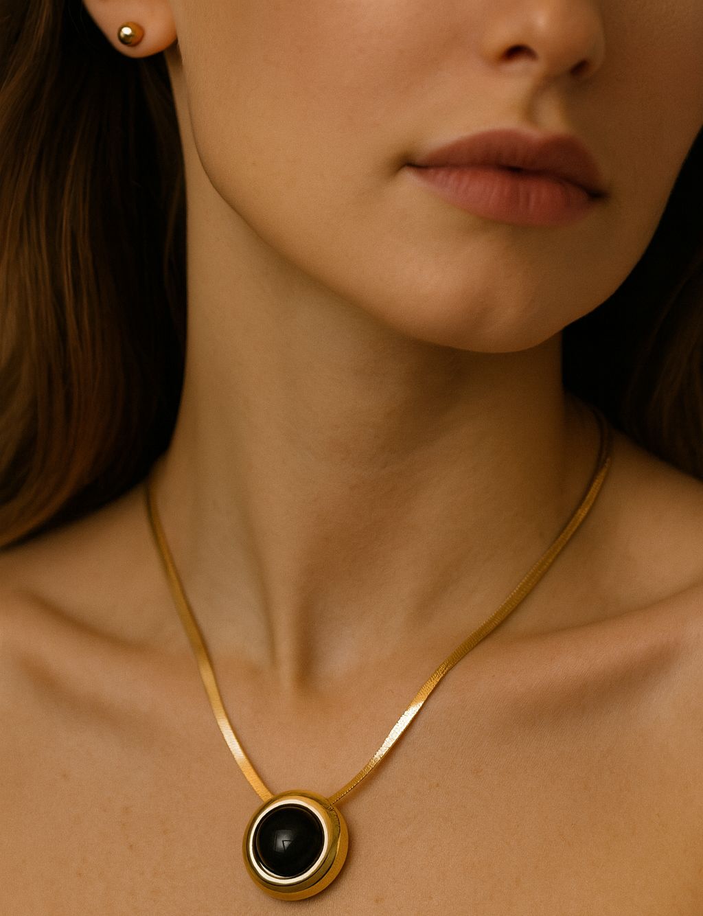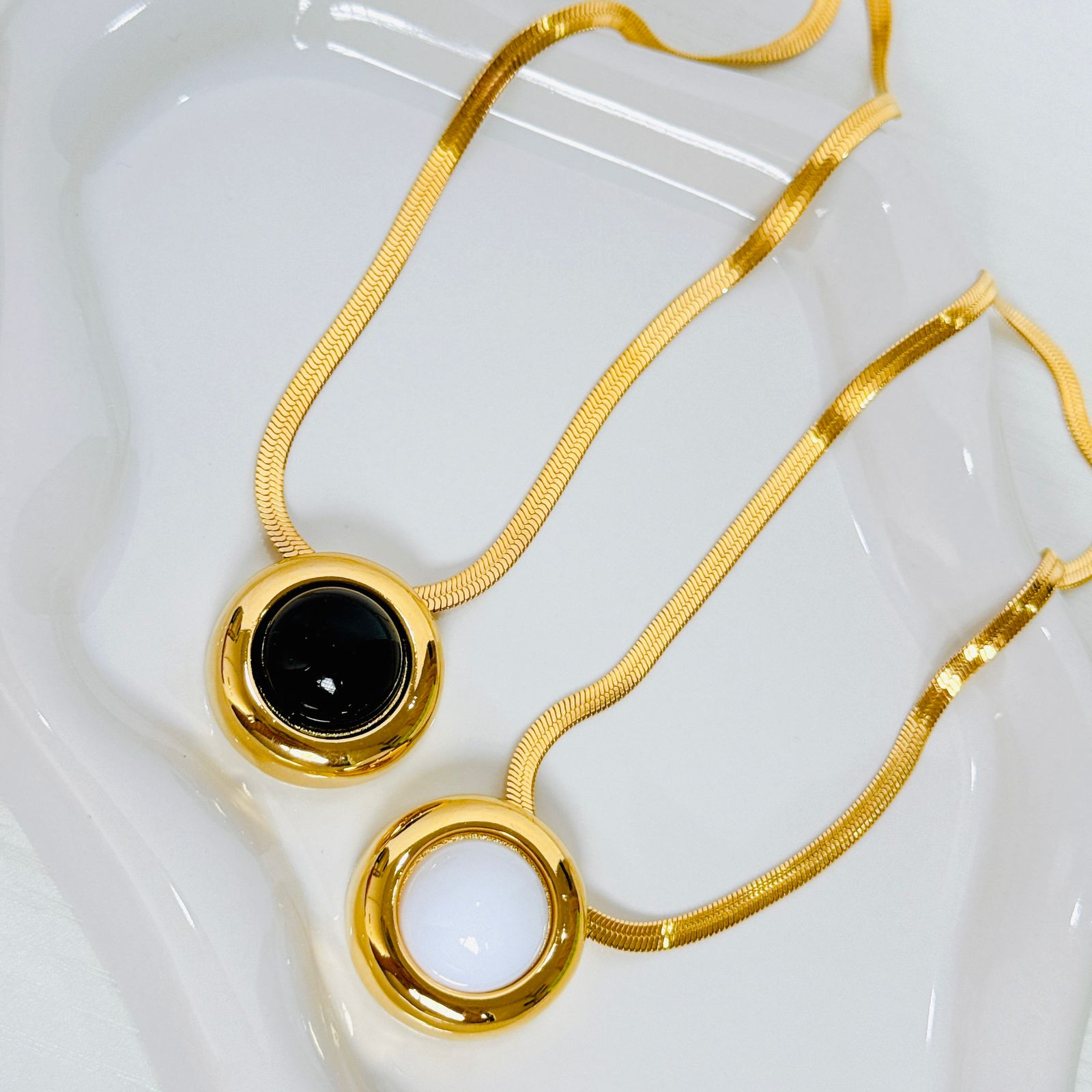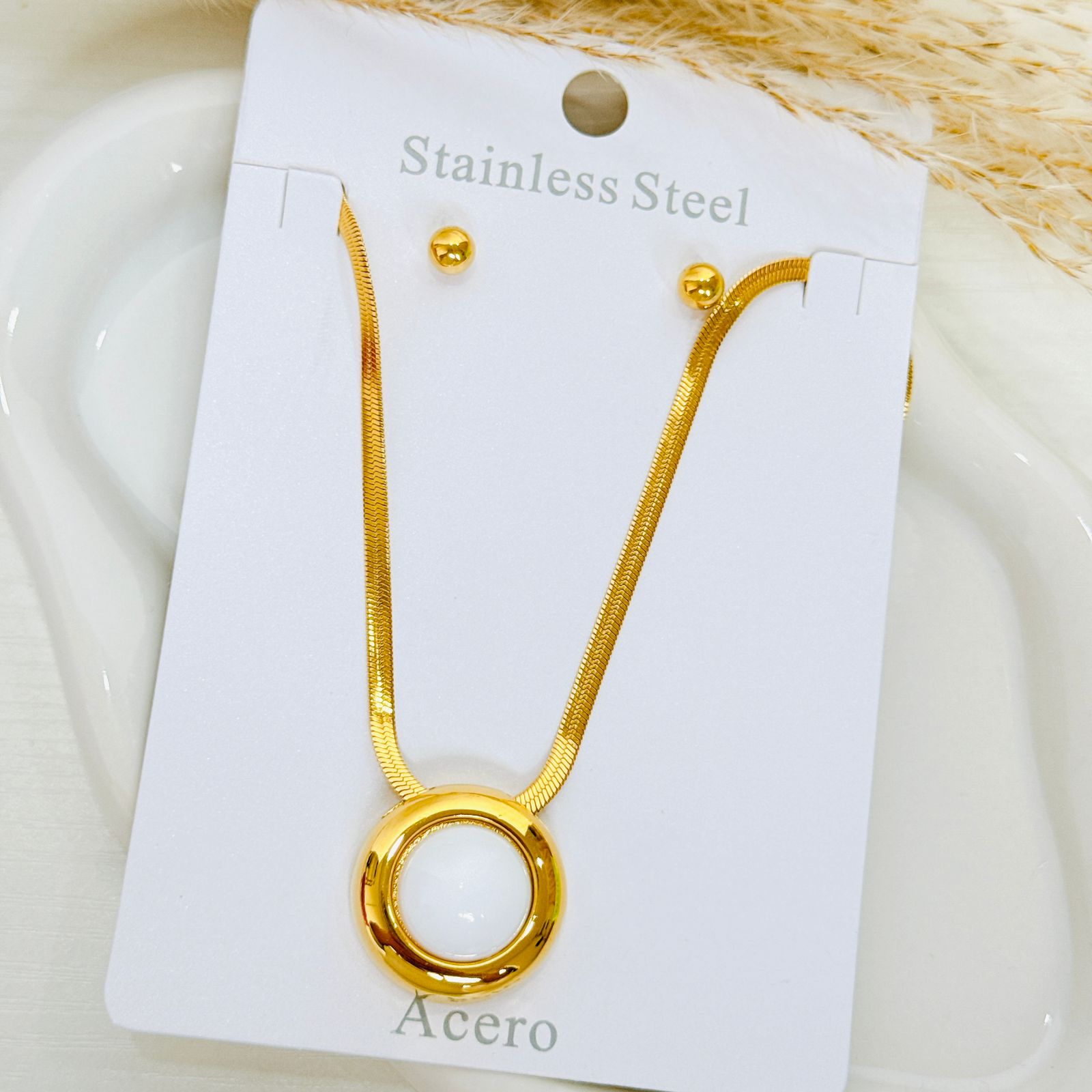 COLLAR Y ARETE PANZA DE VIBORA CON CIRCULAR BLANCO/NEGRO