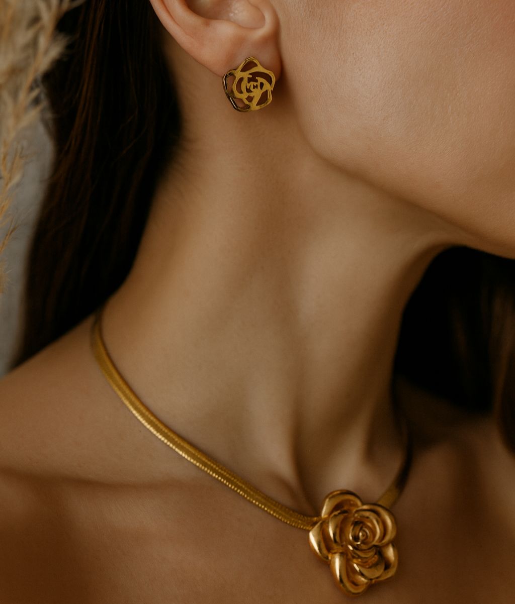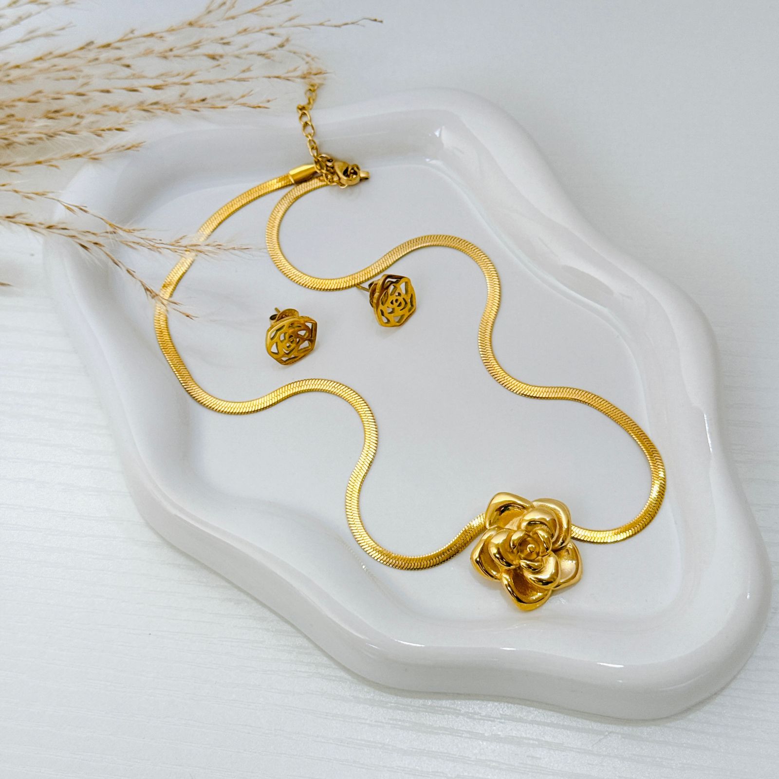 COLLAR Y ARETE PANZA DE VIBORA DE ROSA