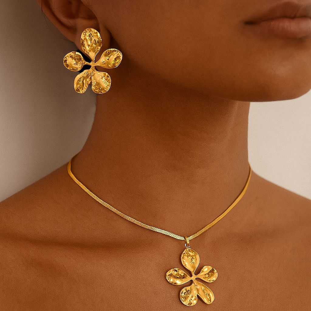 COLLAR Y ARETE PANZA DE VIBORA SOL TRIBAL O FLOR SILVESTRE