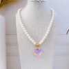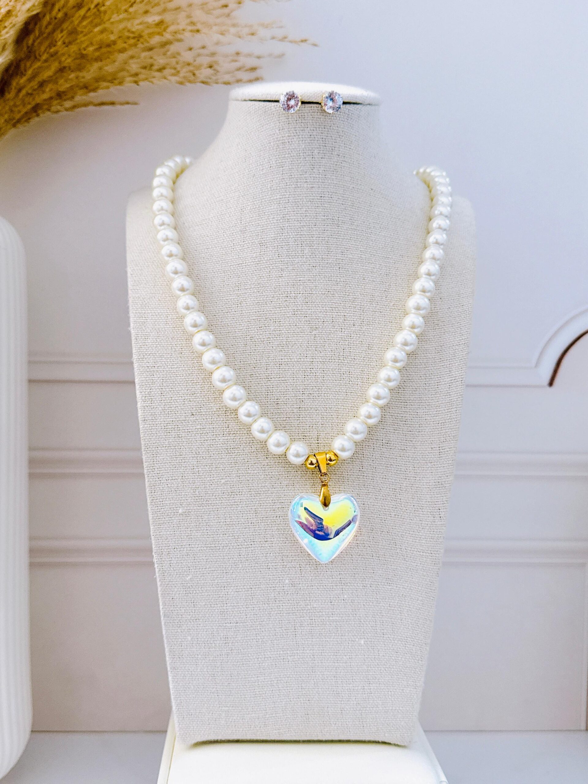 COLLAR Y ARETE PERLA CORAZON GRANDE MULTICOLORES