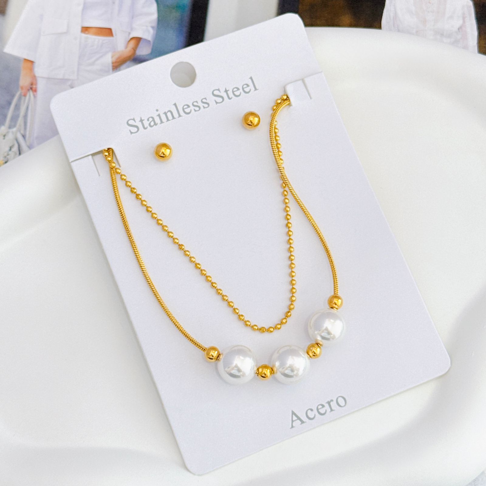 MATERIAL: ACERO INOXIDABLE & PERLA
