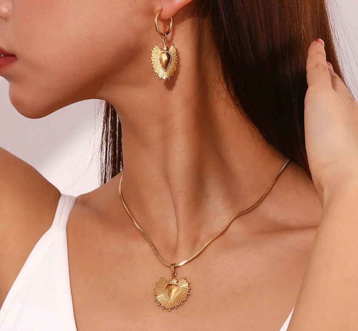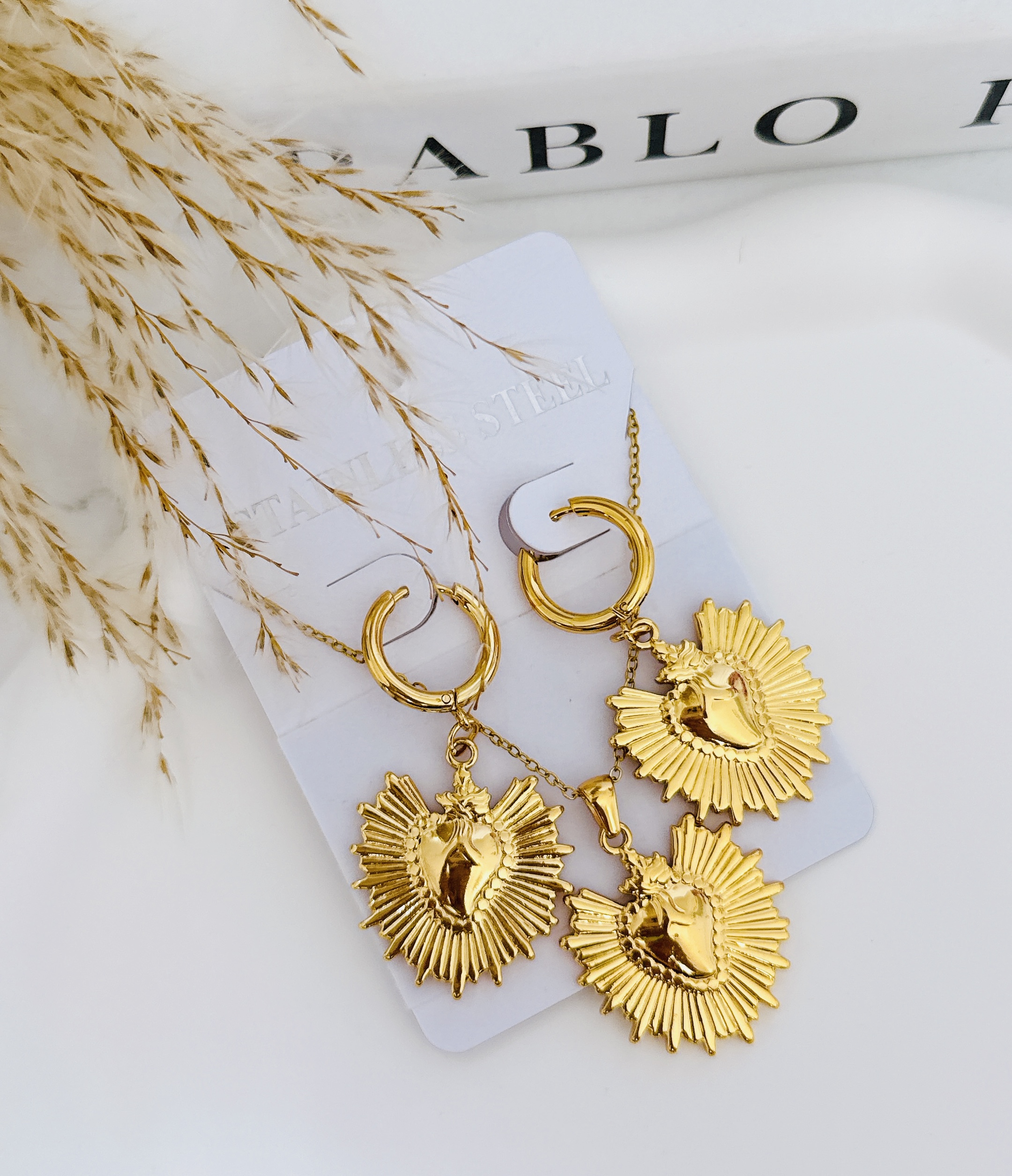 COLLAR Y ARETE SAGRADO CORAZON DORADO