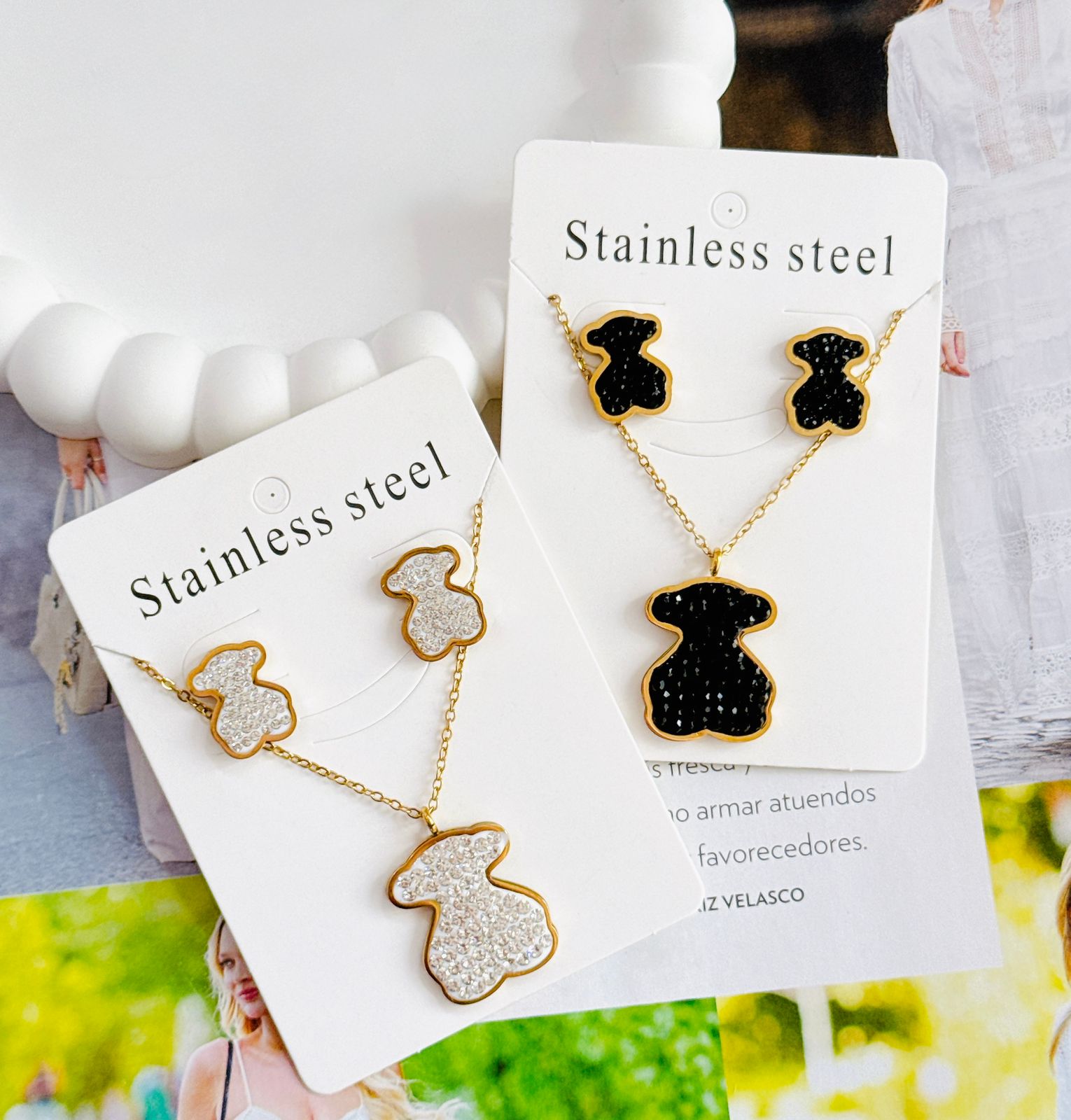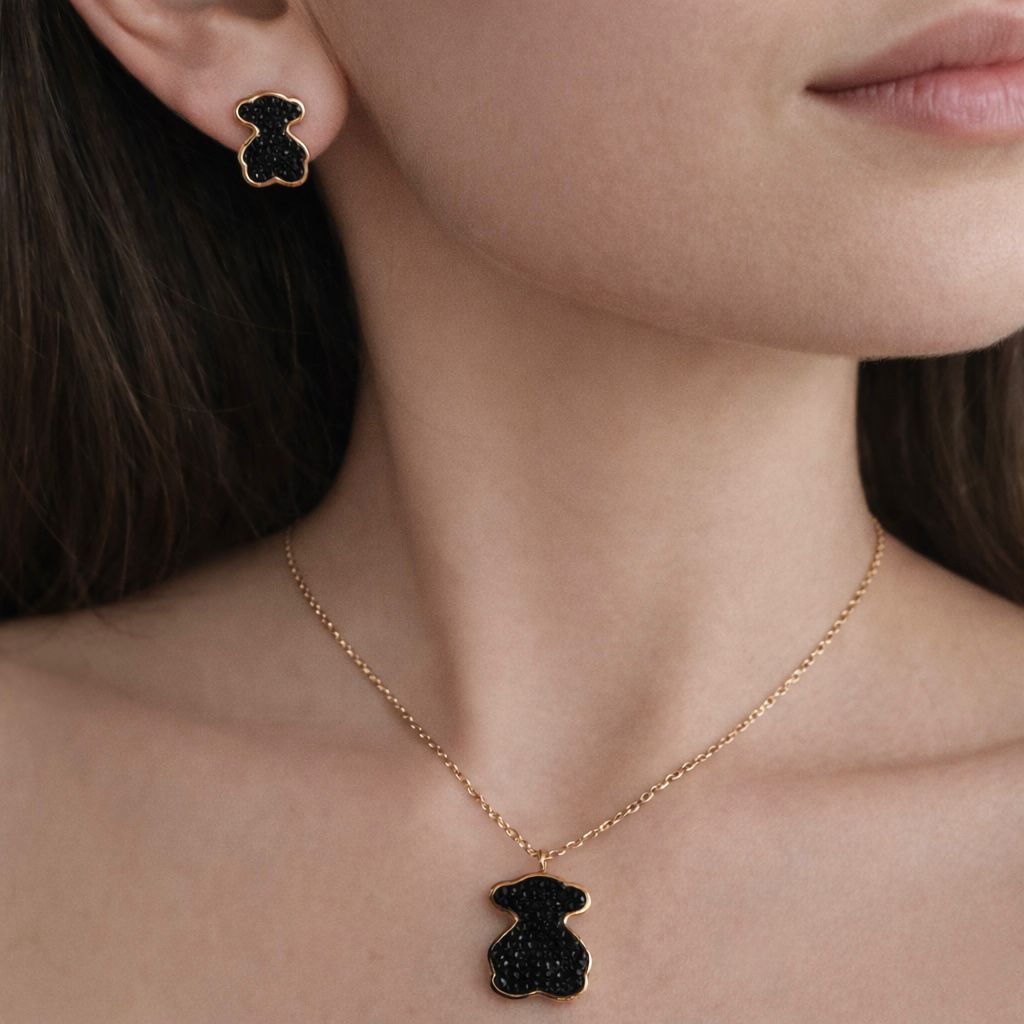 COLLAR Y ARETE TOUS DE CRISTAL BLANCO/NEGRO