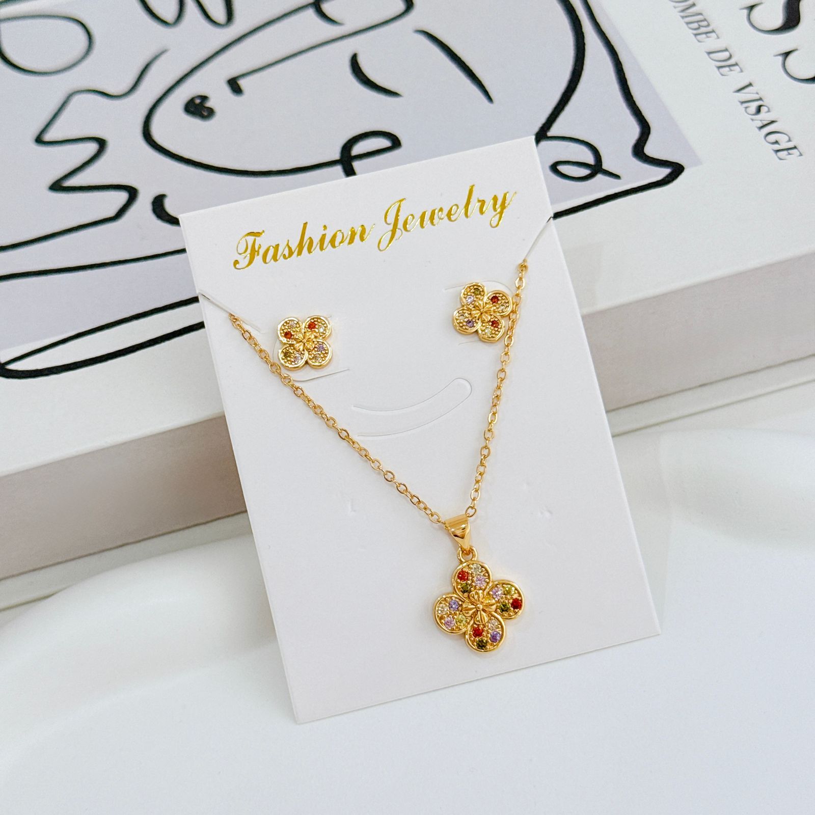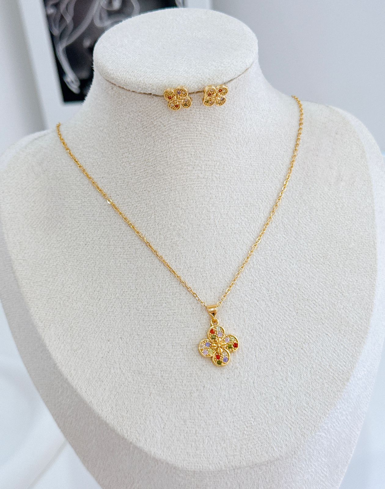 COLLAR Y ARETE TREBOL ORO LAMINADO