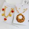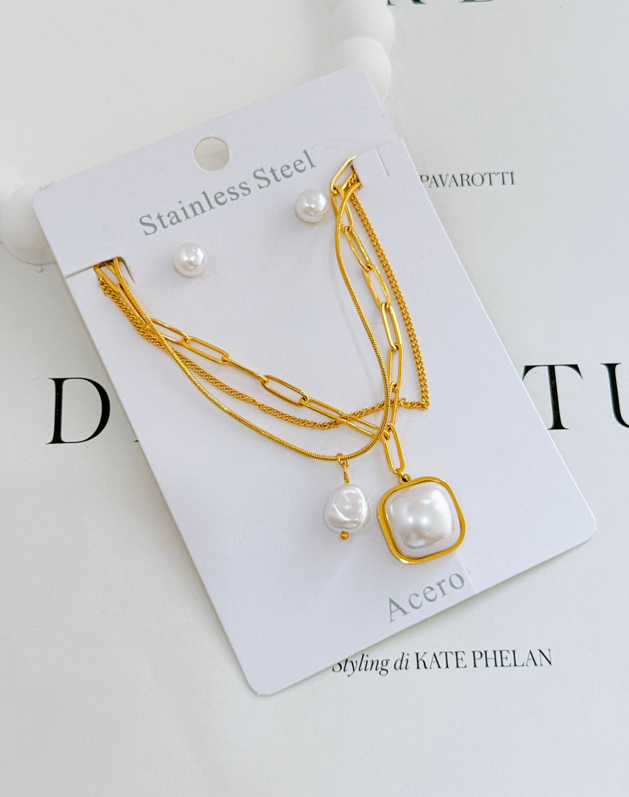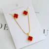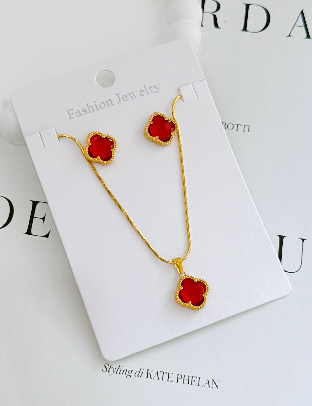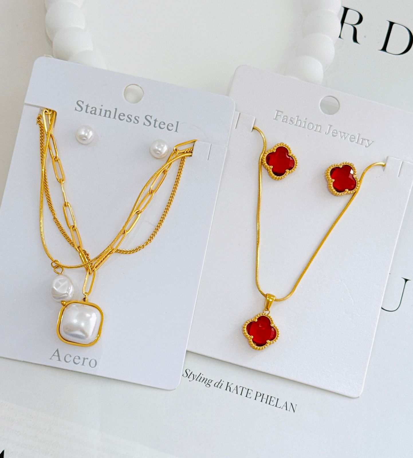 COLLAR Y ARETE TRIPLE CAIDA CON PERLA O TREBOL ROJO