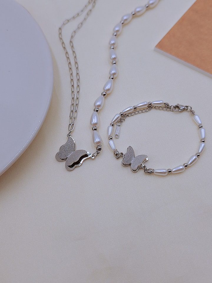 COLLAR Y PULSERA MARIPOSA CON PERLA