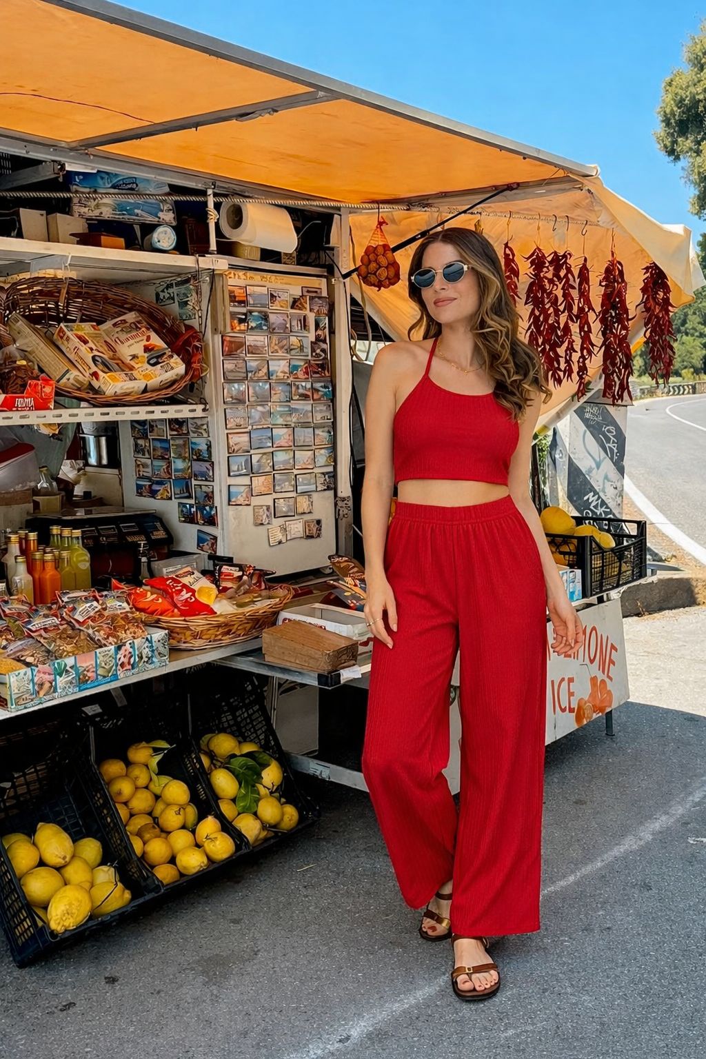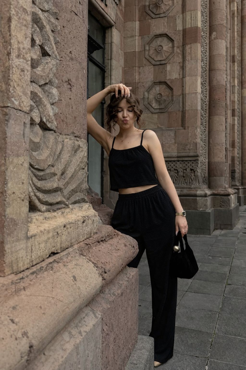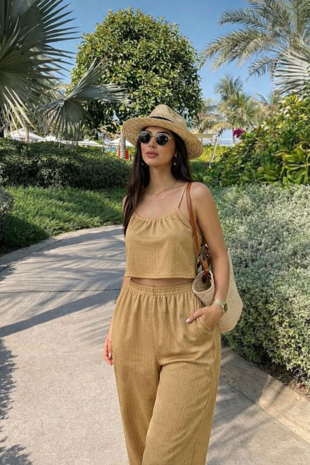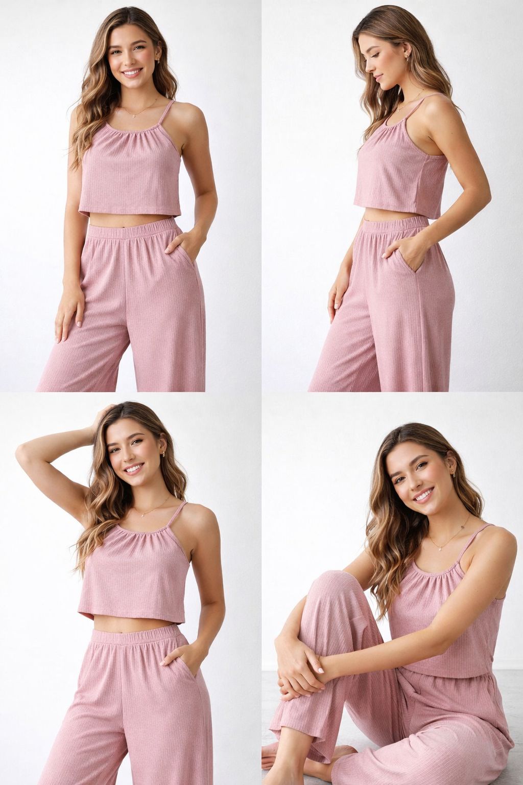 CONJUNTO CON BLUSA DE TIRA Y PANTALON HOLGADO (0215)