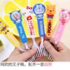 Cuchara de acero inoxidable con mango de plástico y diseño animado.