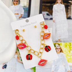 COLLAR Y ARETE MULTI CHARMS LABIOS Y MULTI CHARMS DE CORAZON - B