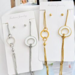 COLLAR Y ARETE LARGO CON ARO Y DOBLE CAIDA - DORADO