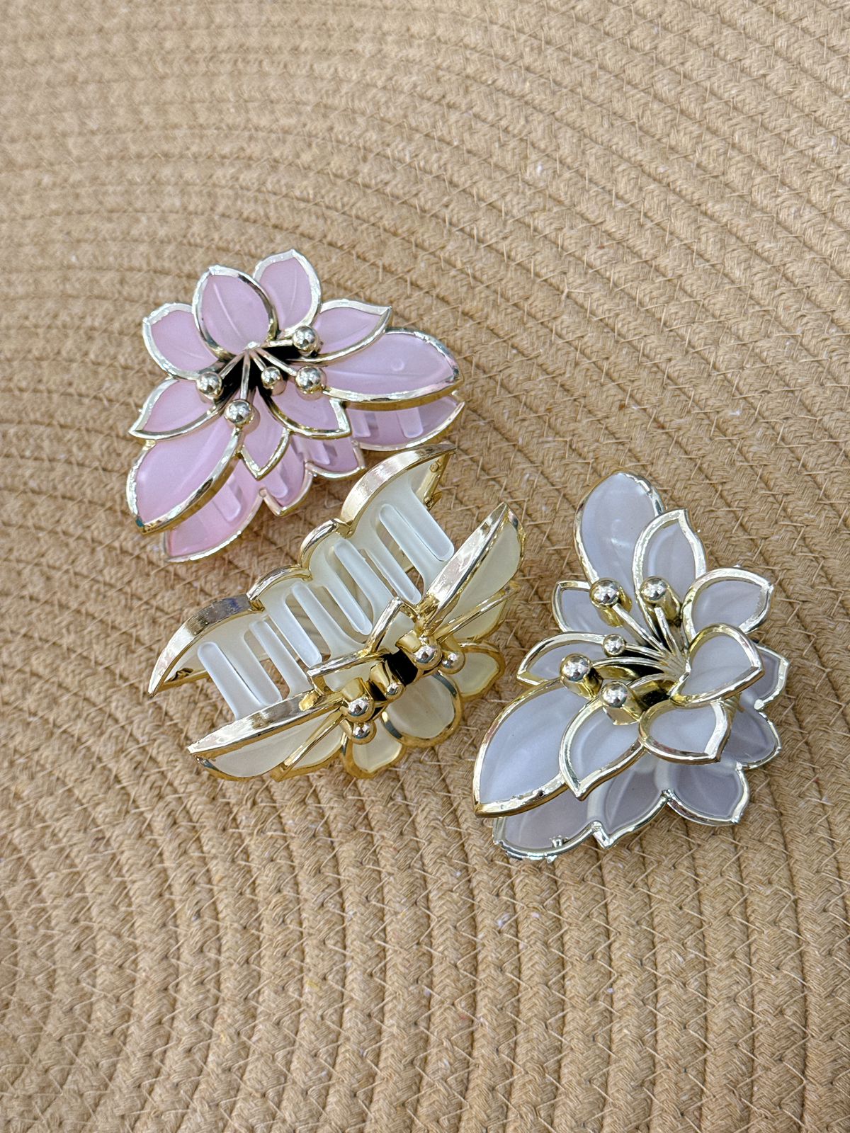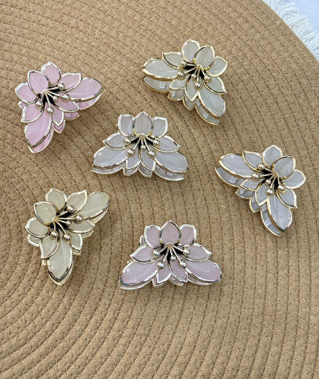 PAQUETE DE PINZAS FLOR DE MAGNOLIAS CON BORDADO DORADO