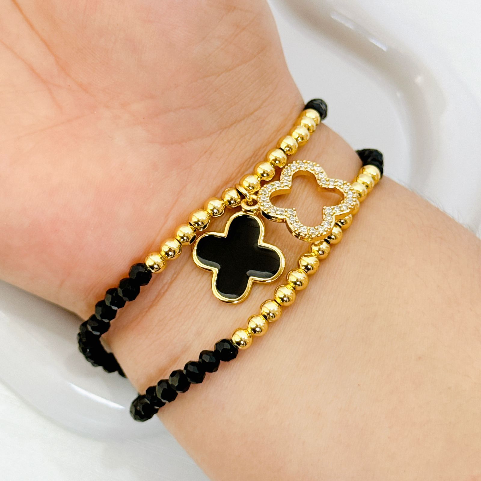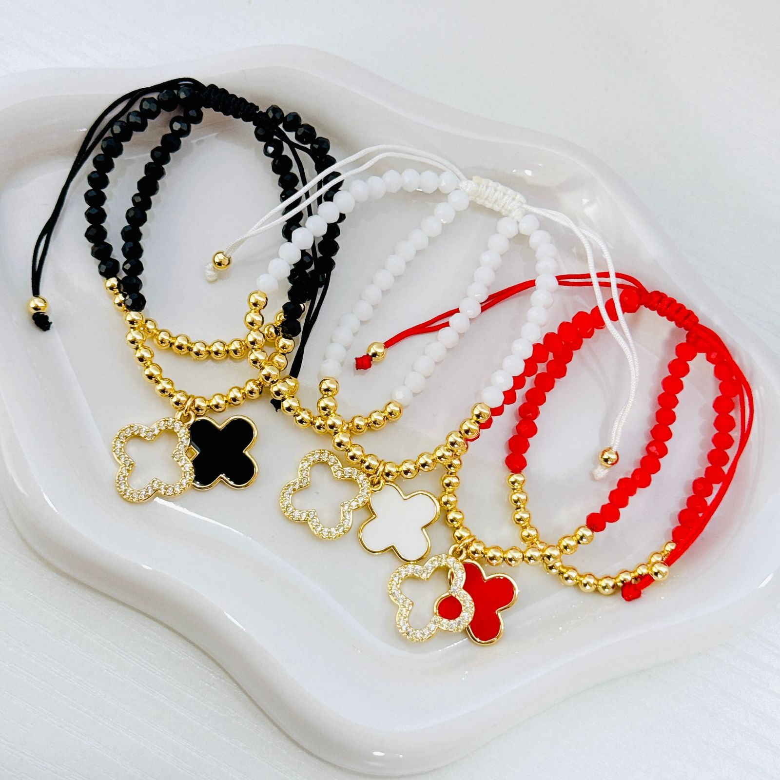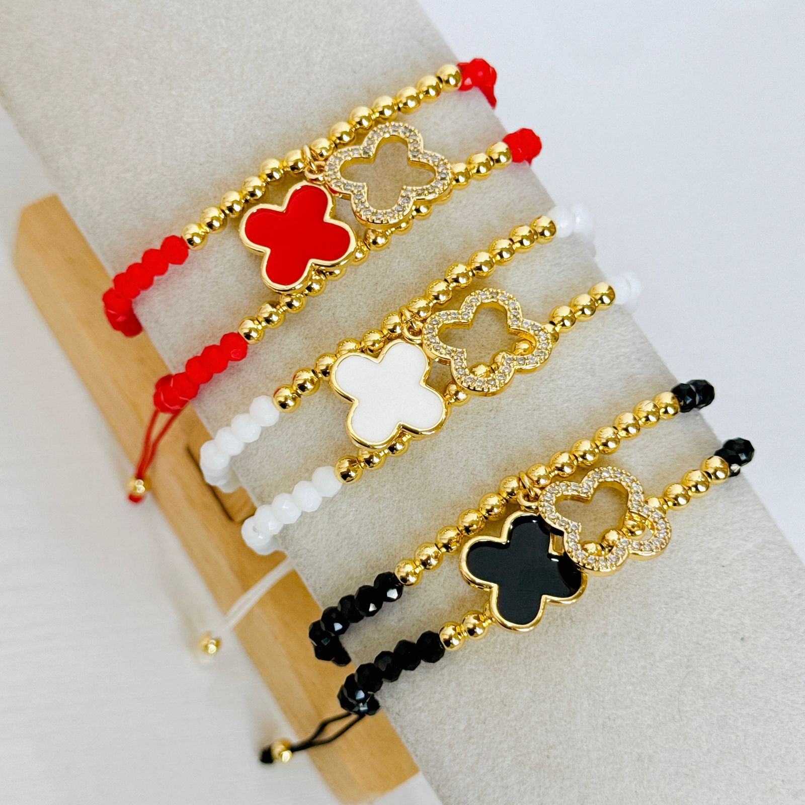 PULSERA AJUSTABLE CRISTAL Y DOBLE TREBOL
