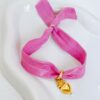 PULSERA AJUSTABLE DE TELA ROSA Y DIJE DEL SAGRADO CORAZON