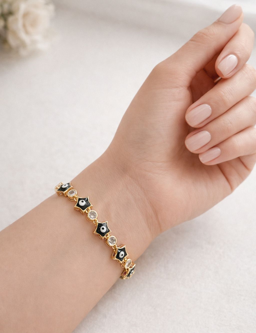 PULSERA AJUSTABLE ESTRELLA OJO TURCO NEGRO
