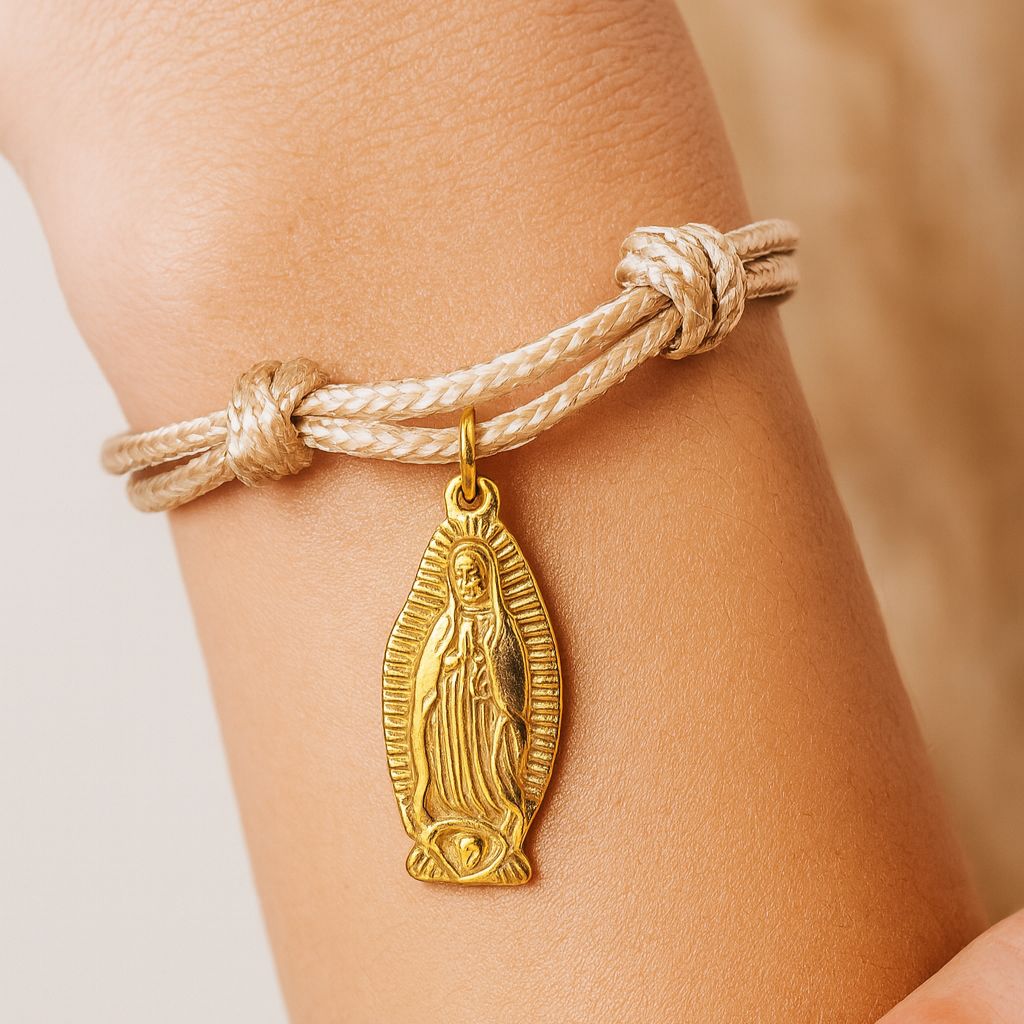 PULSERA BEIGE CON IMAN DE VIRGEN