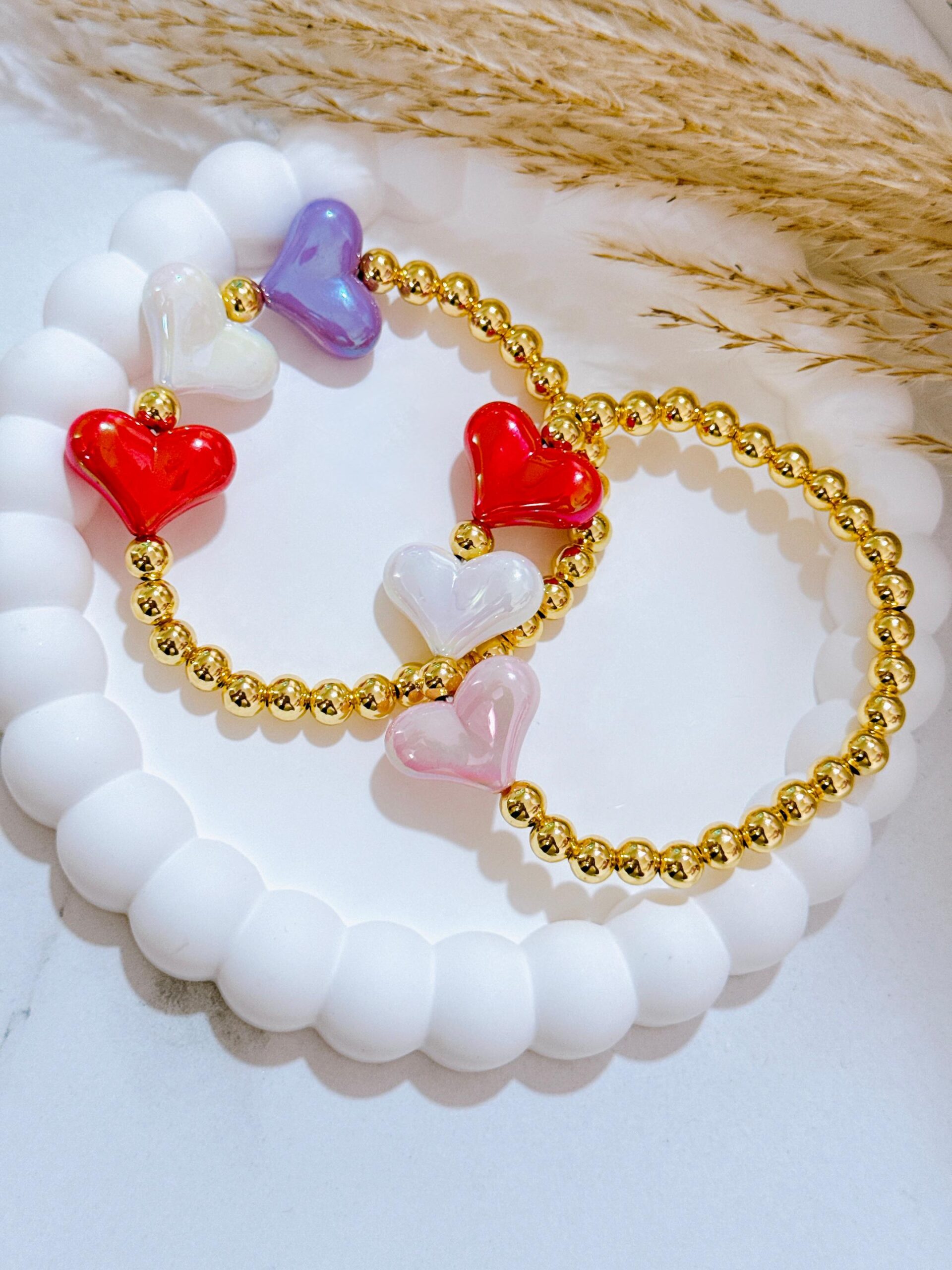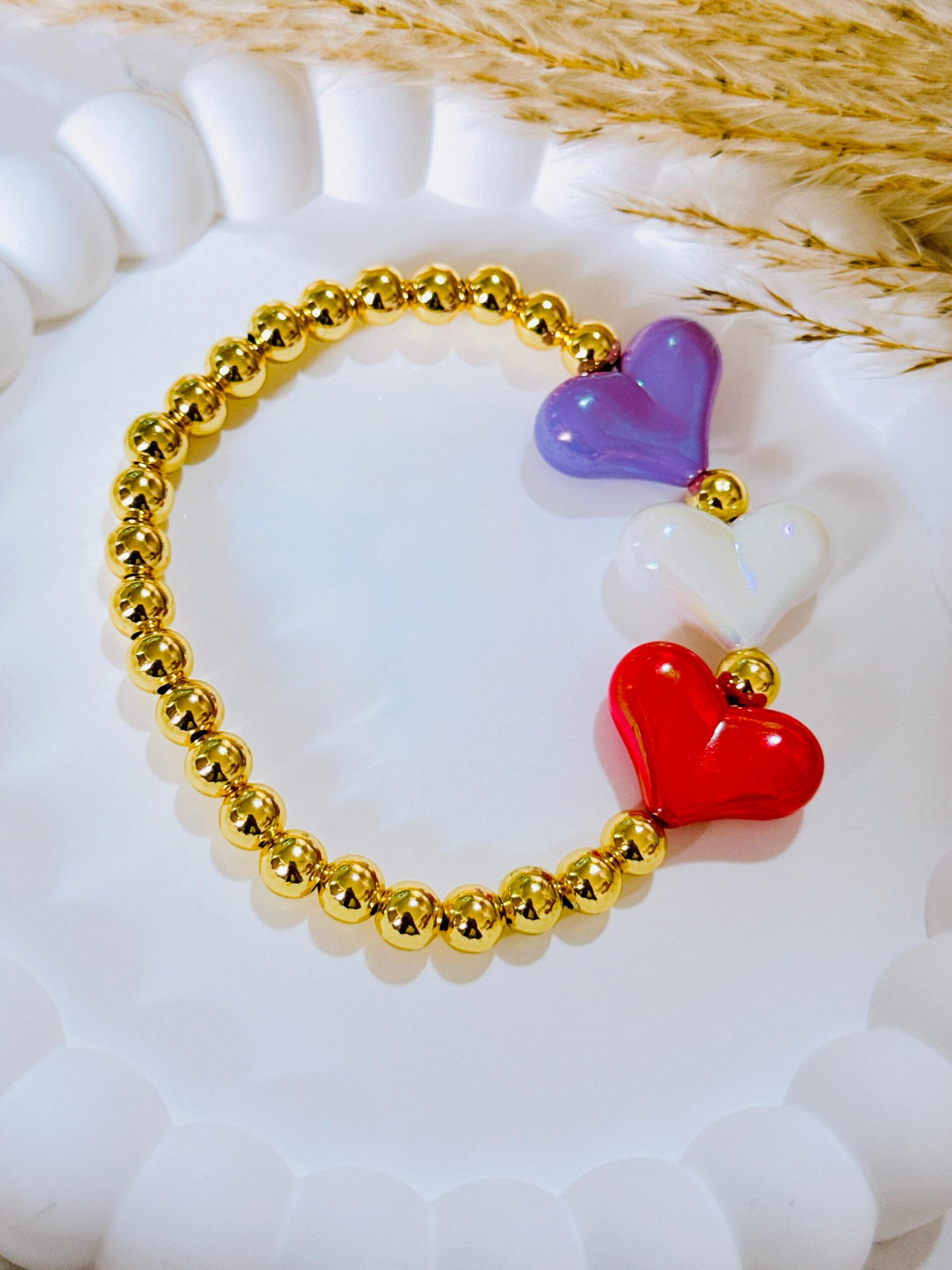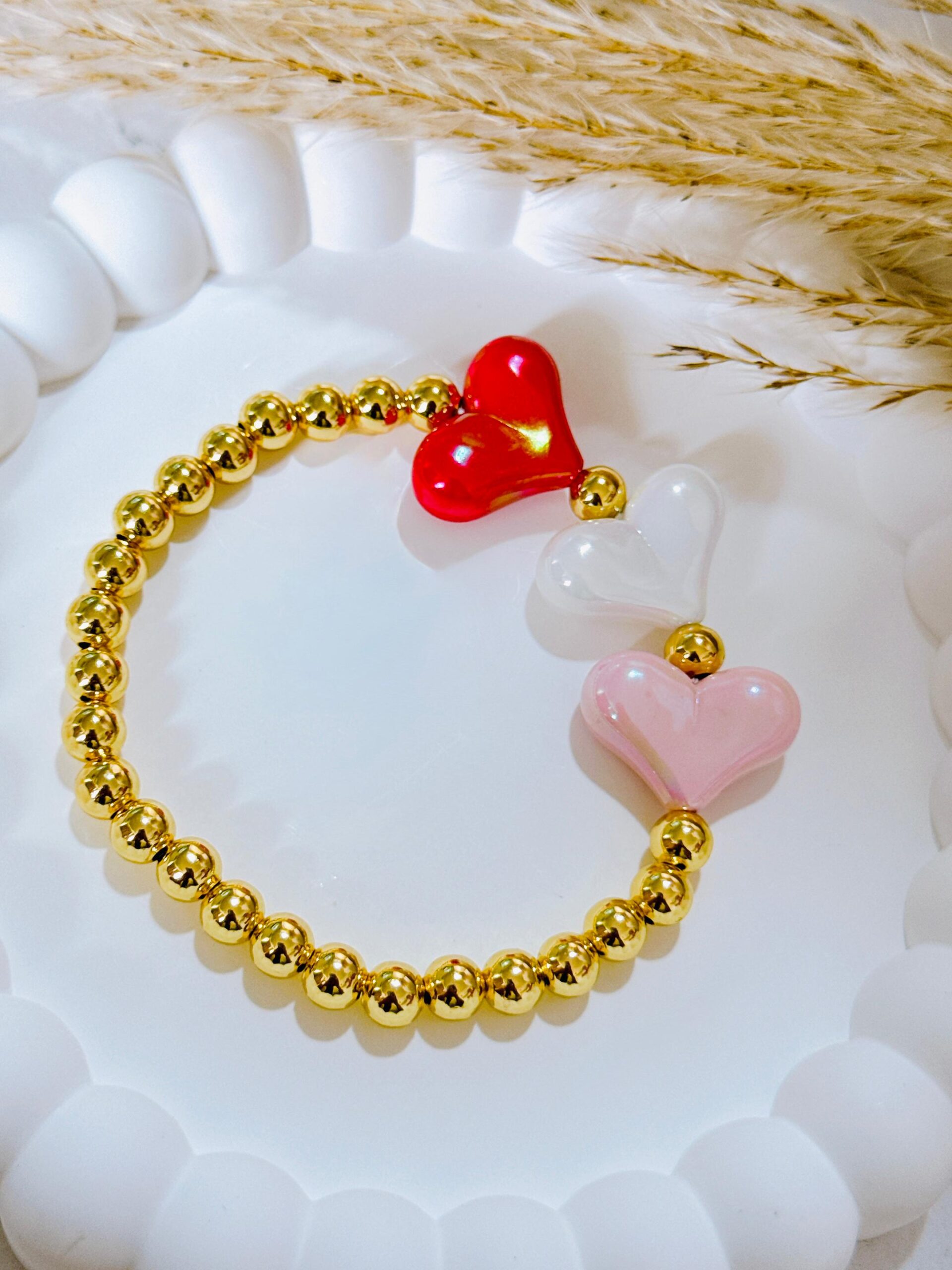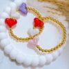 PULSERA BOLITA CON CORAZON MULTICOLORES