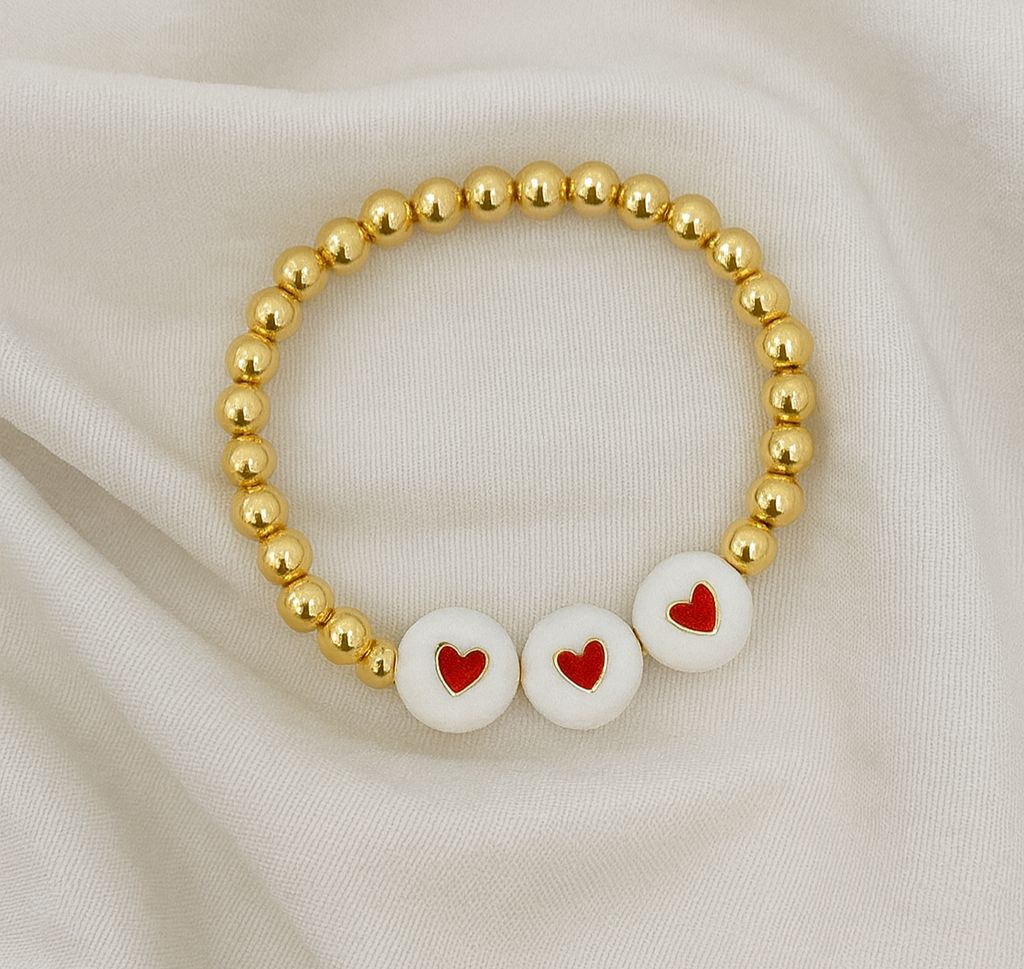 PULSERA BOLITA CON DIJE DE CORAZON ROJO/BLANCO V2