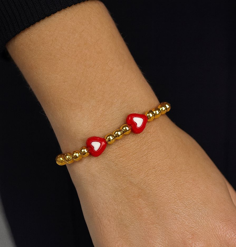 PULSERA BOLITA CON DIJE DE CORAZON ROJO/BLANCO V1