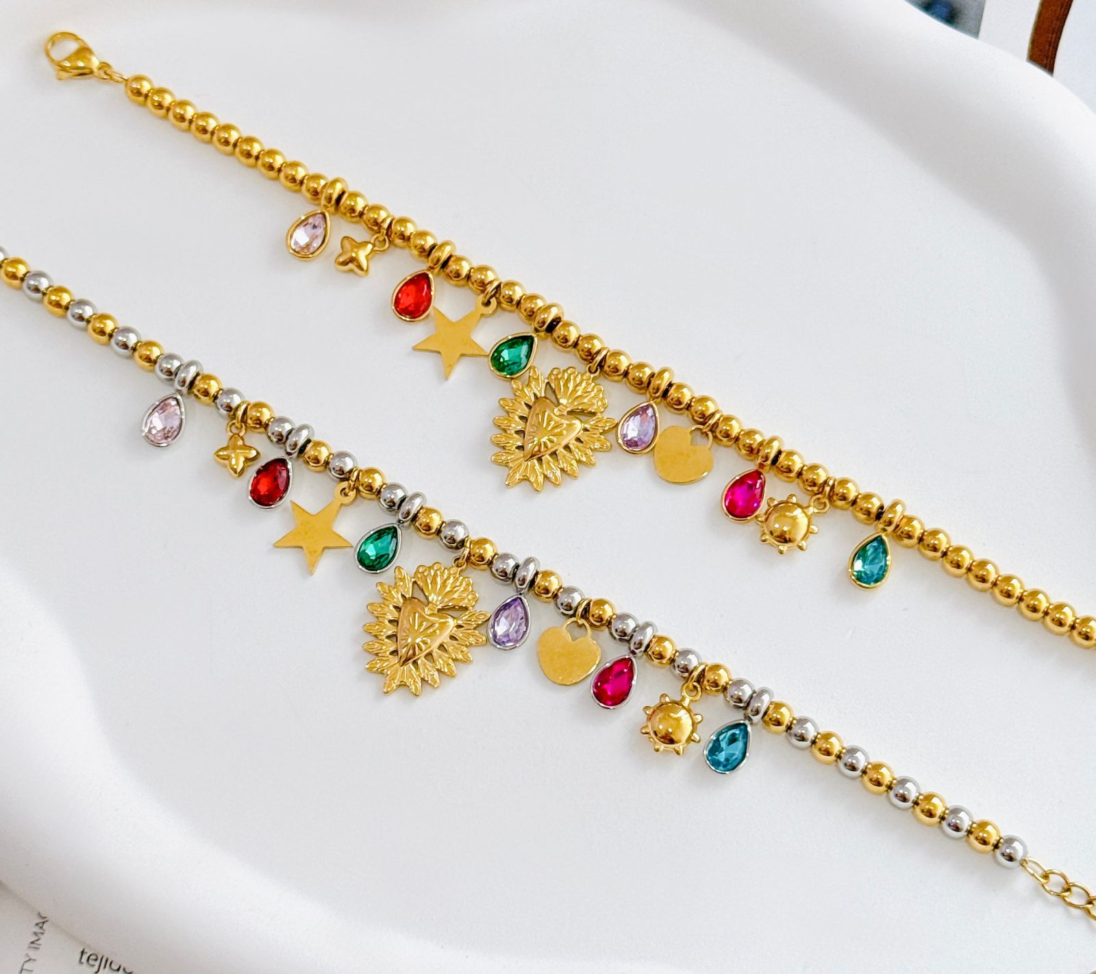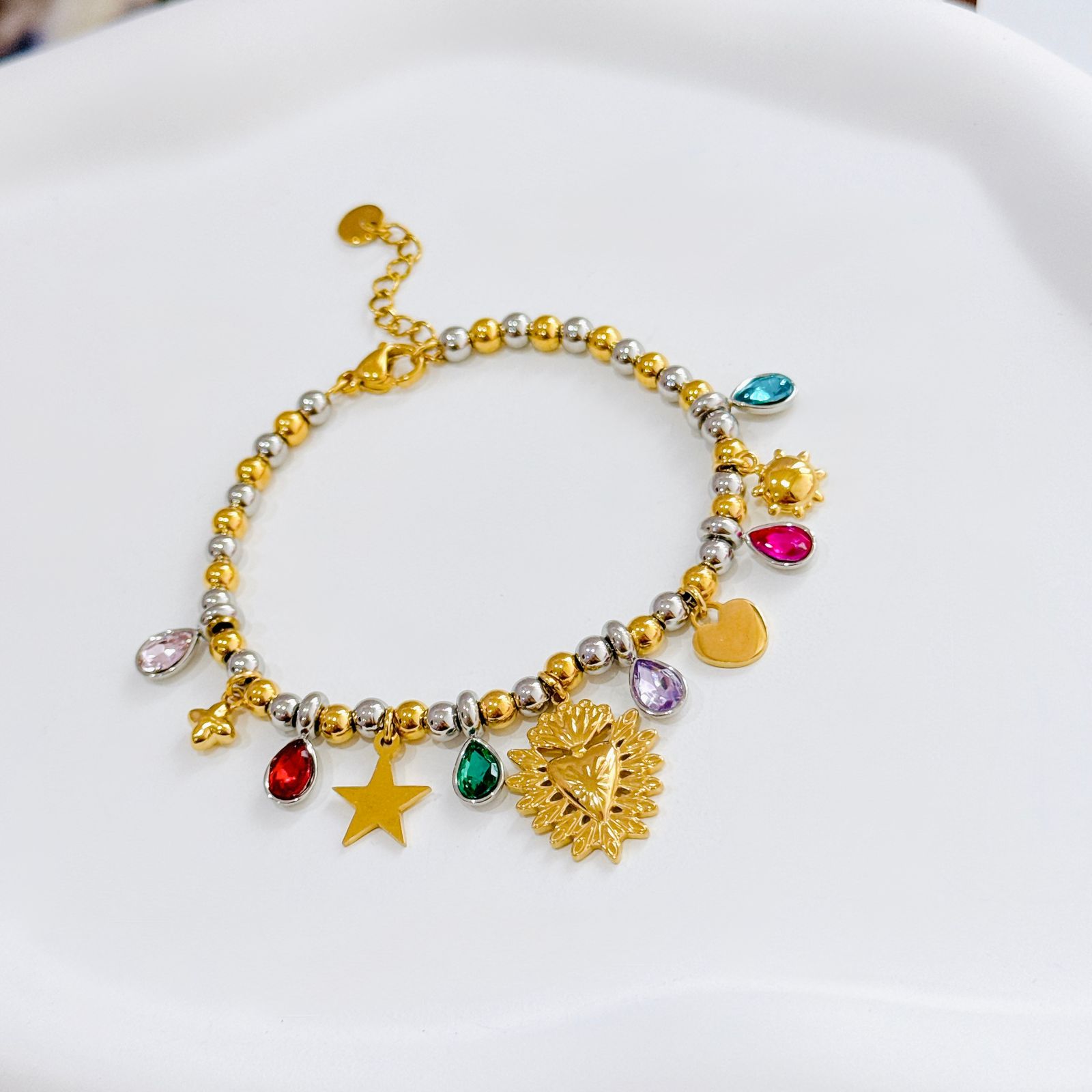 PULSERA BOLITA CON MULTI DIJE EN DORADO/PLATA (SAGRADO CORAZON)