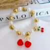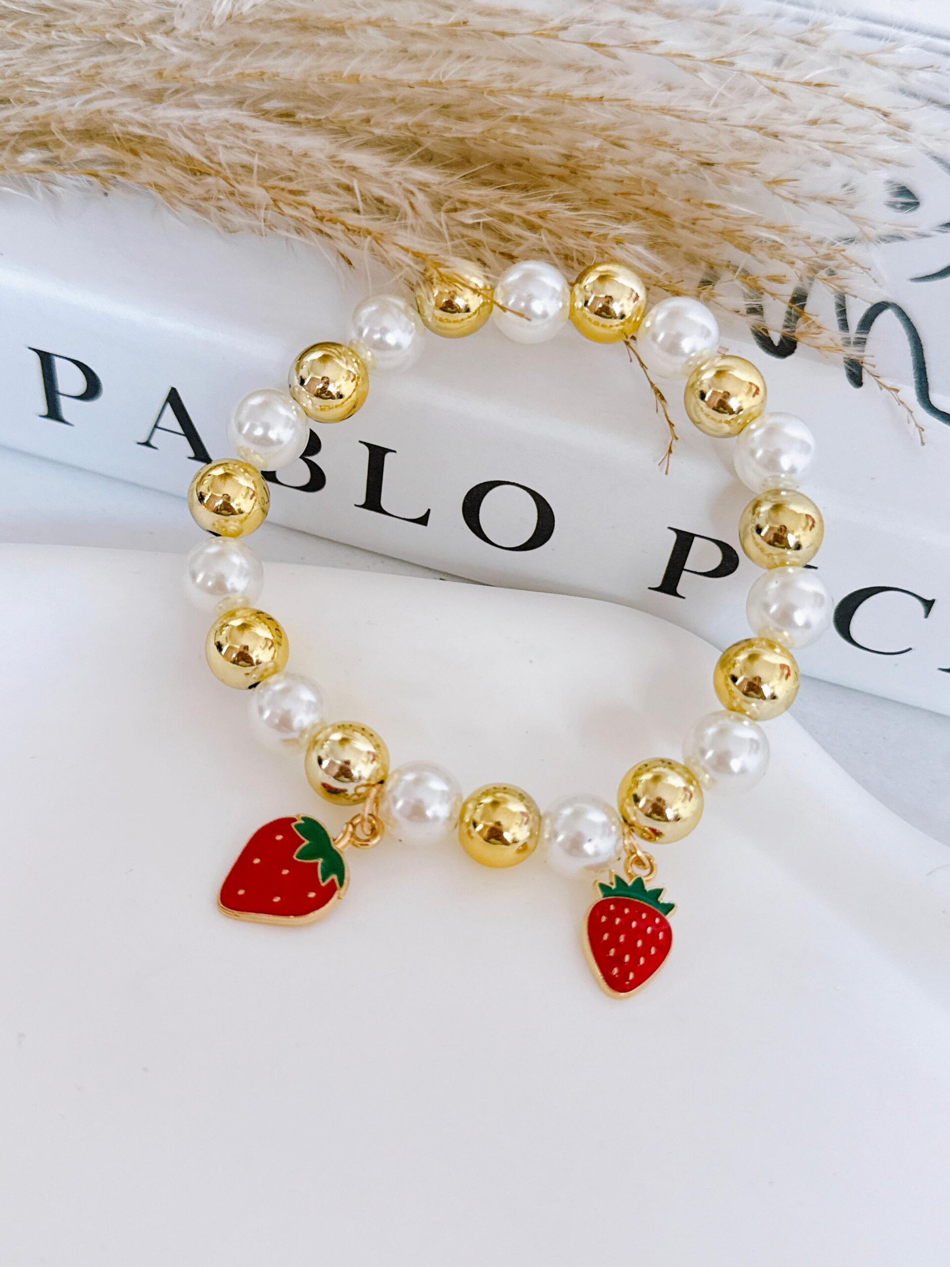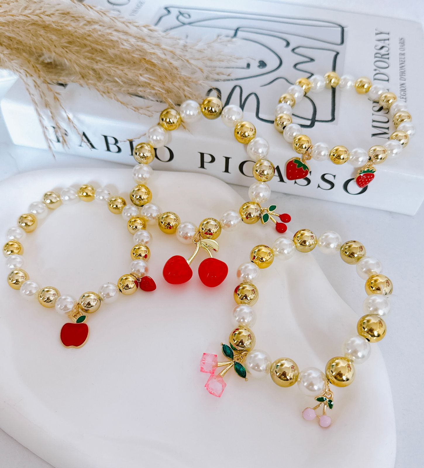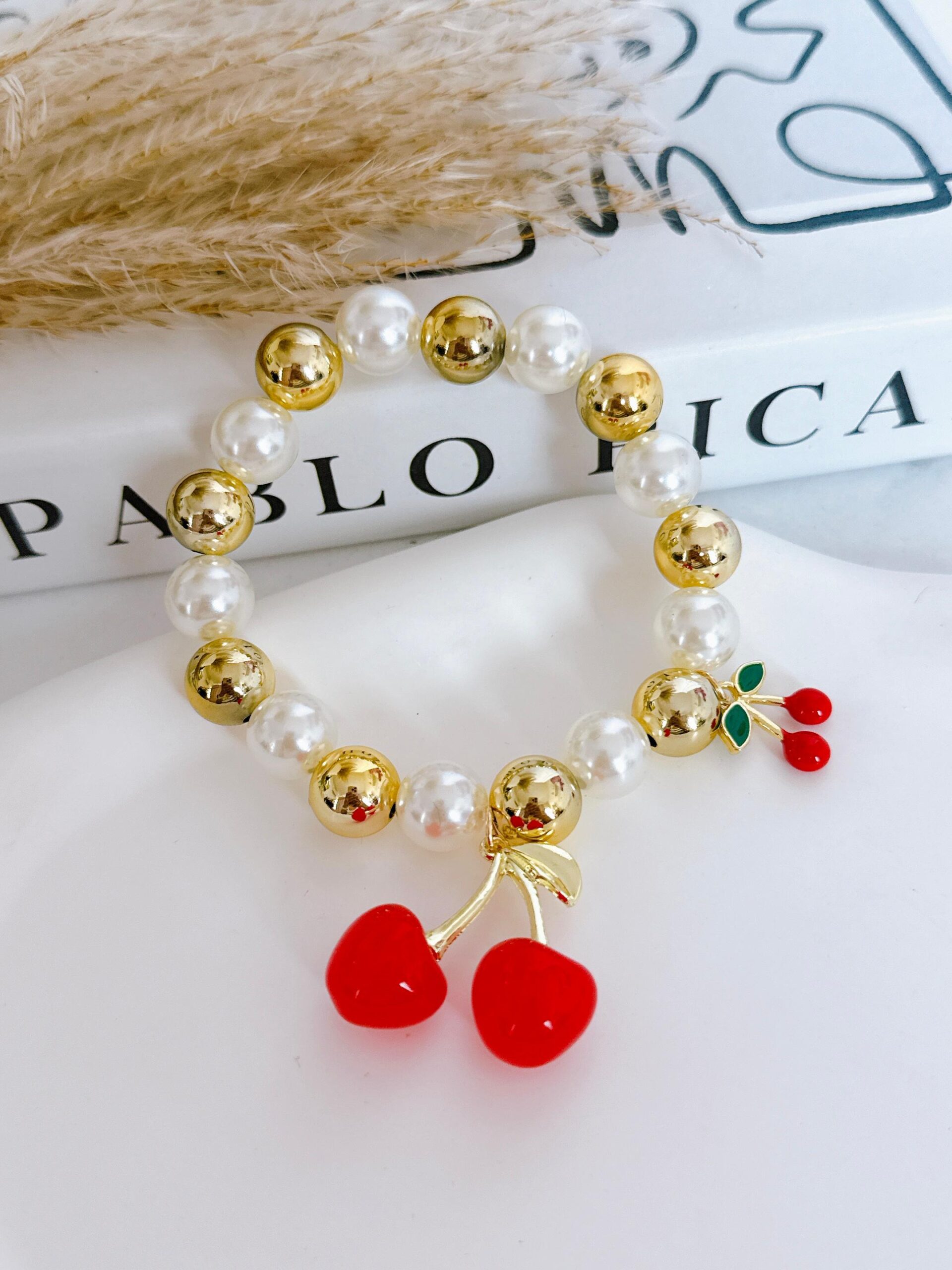 PULSERA ROJO Y DORADO CON DIJE CEREZA O FRESA