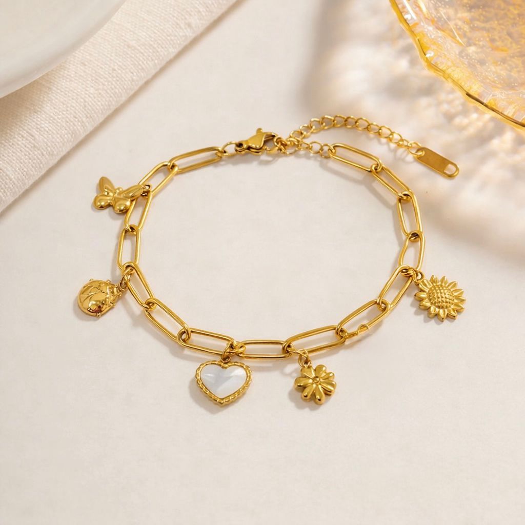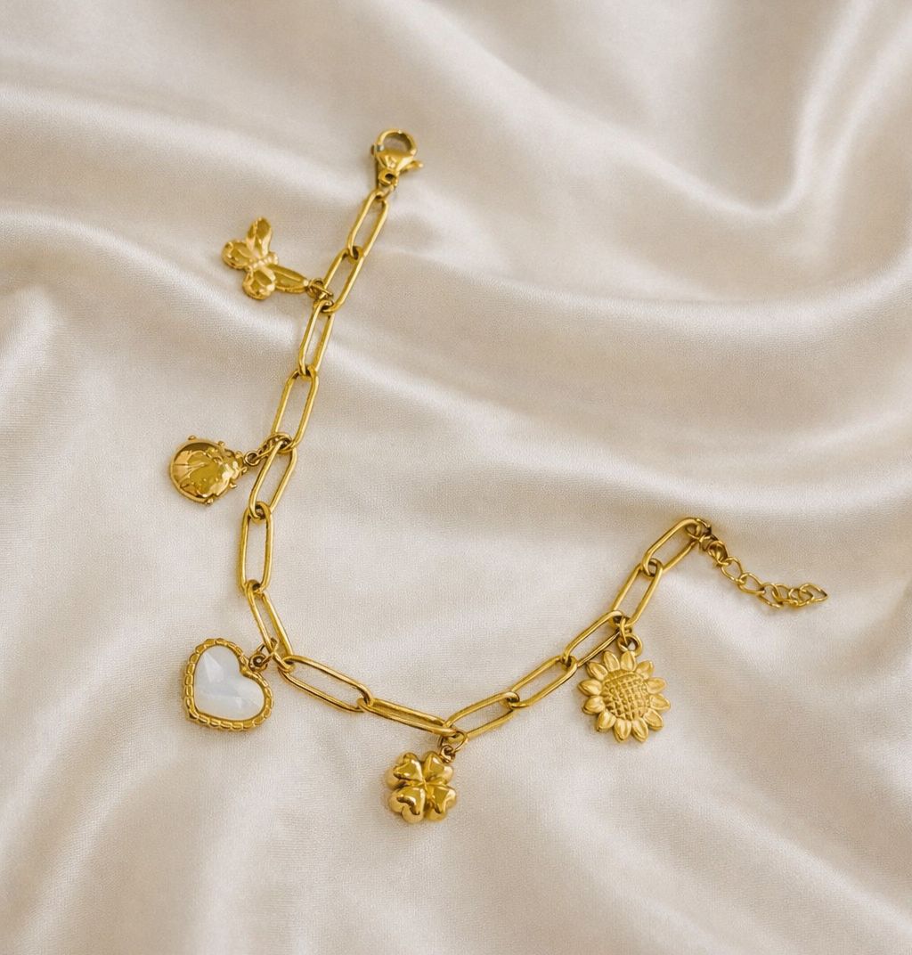 PULSERA DE ESLABON CHICO CON MULTI DIJE