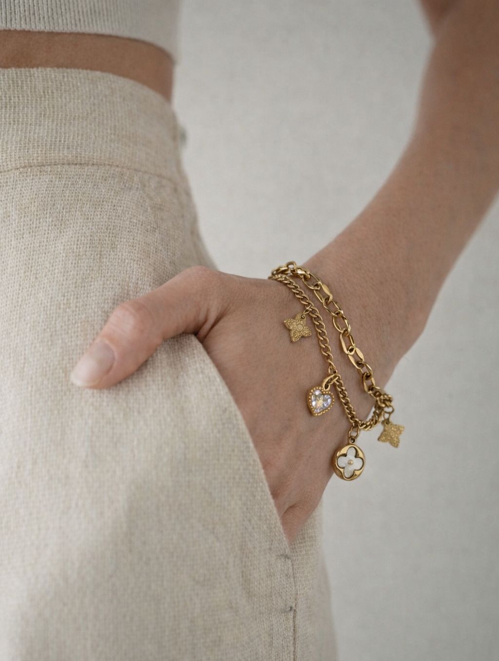 PULSERA DOBLE CAIDA DE MULTI CHARMS RELIGIOSO O MARCA