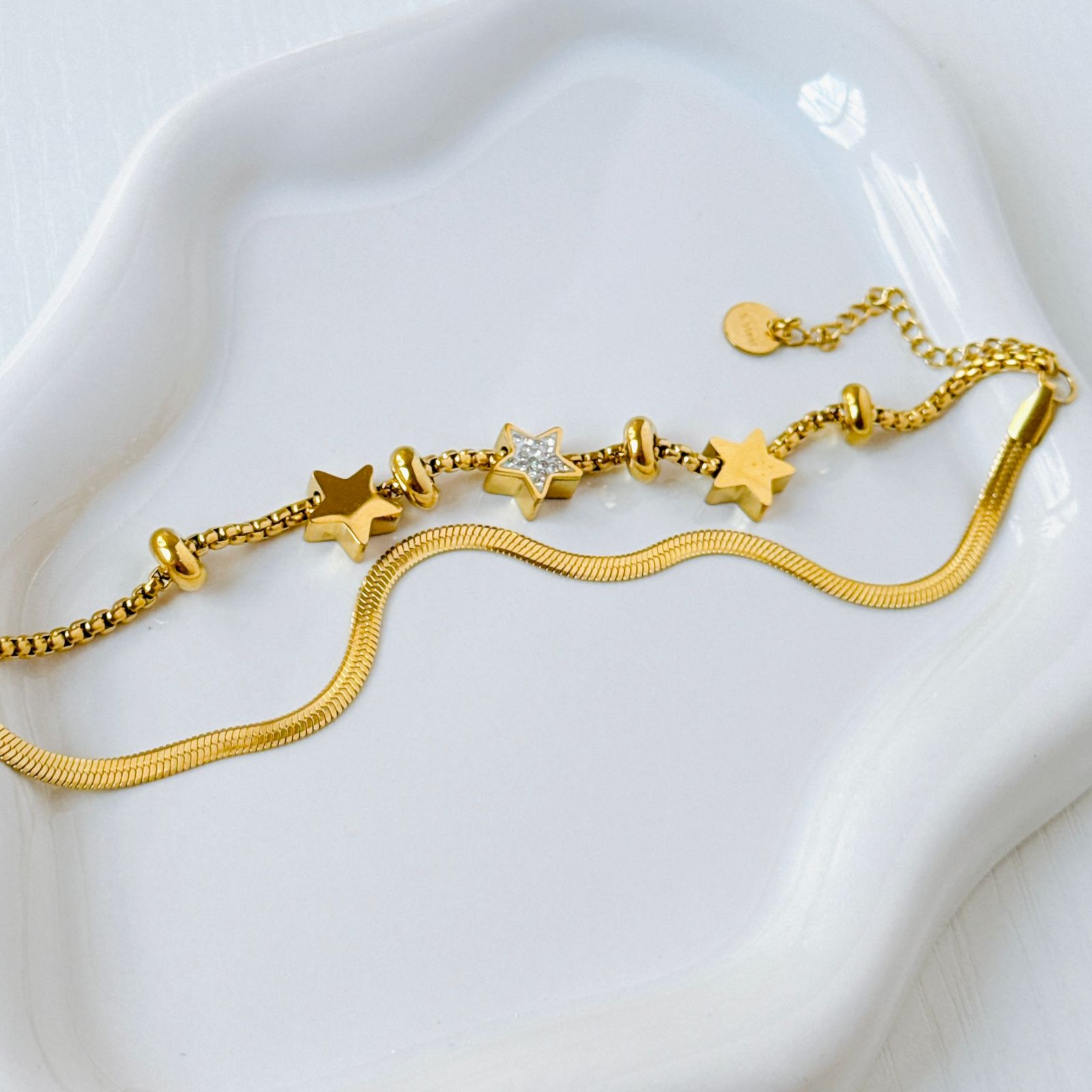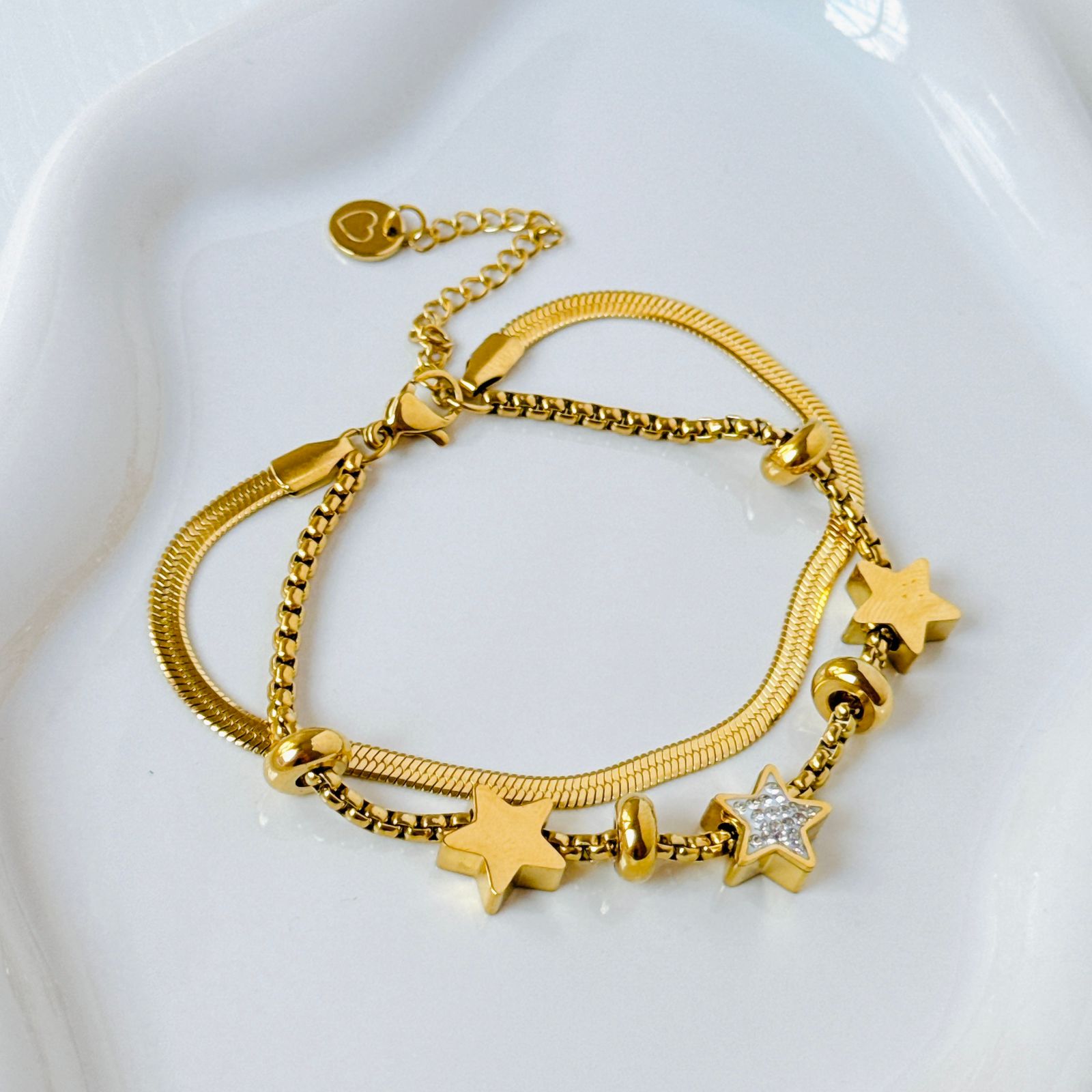 PULSERA DOBLE EXTENSION DE PANZA DE VIBORA Y ESTRELLA