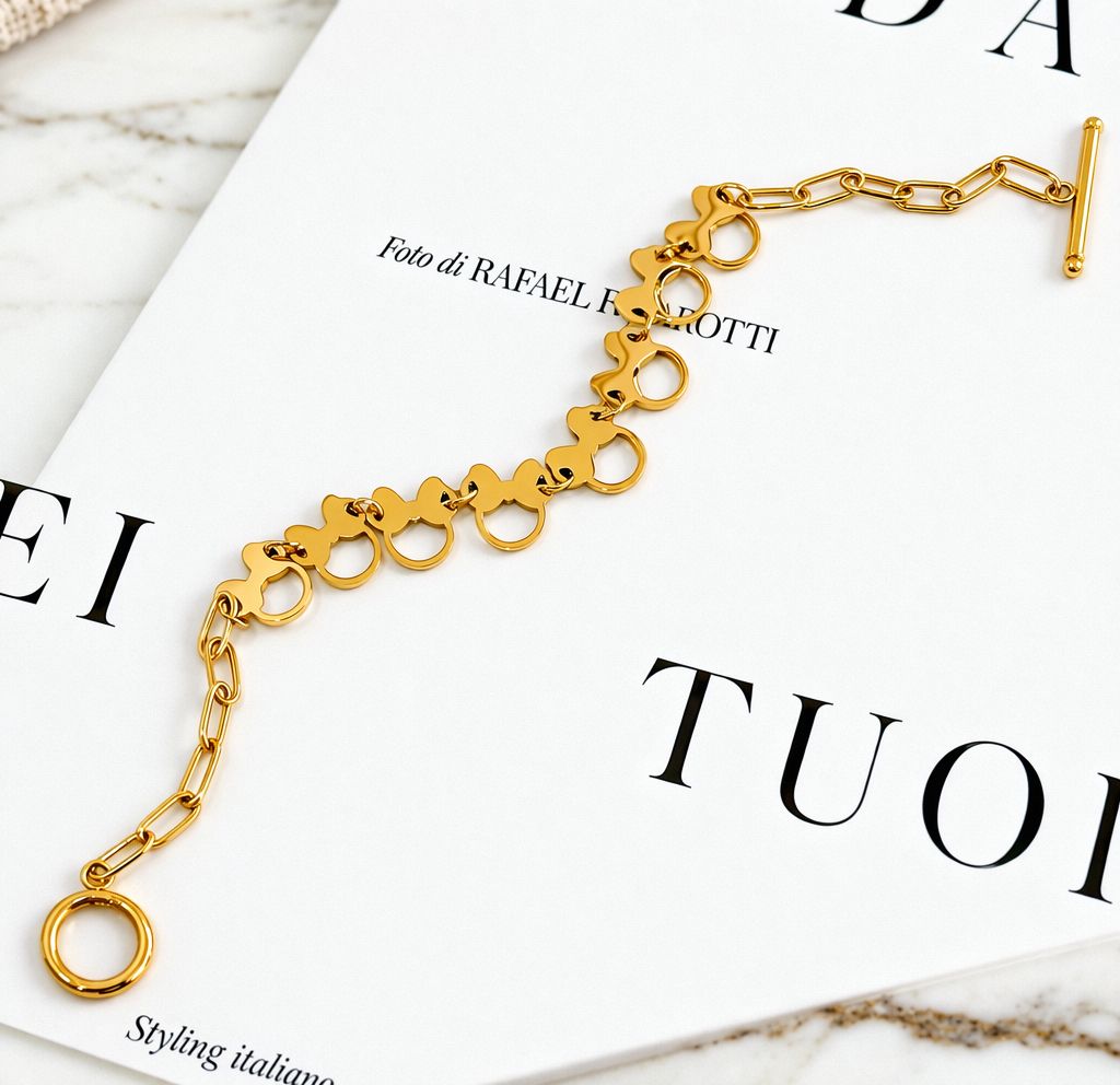 PULSERA MINNIE MOUSE CON BROCHE T DORADO